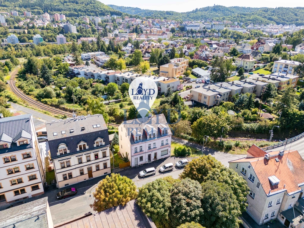 Cihlový dům se třemi obytnými podlažími a jedním podzemním podlažím na hlavní ulici U Trati, ve čtvrti Karlov Vary – Bohatice. Lokalita v dosahu MHD (100 m), do centra města Karlovy Vary 5 minut autem. Základní služby v místě. Dům z roku 1919 má základní stavební prvky bez znatelných vad, vyžaduje však rekonstrukci podle představ budoucího majitele – nájemní bydlení, prodej po jednotkách atd. Zahrada poskytuje zázemí pro obyvatele domu, zároveň umožňuje vybudovat parkování/garáže na vlastním pozemku. Suterén – garáž pro dva vozy, dílna (možno přebudovat na garáž), sklepy Přízemí – dva nebytové prostory, možno přestavět na dva byty 1+1 První patro – dva byty 2+1 a 1+1 Podkroví – celkem 5 místností Sedlová střecha, krytina eternit, některá okna vyměněna za plastová, ostatní dřevěná. Na zahradě posezení a možnost parkování. Sítě – elektrická energie, veřejný vodovod a kanalizace, plny. Vytápění plynové kotle a přímotopy. Plochy Celková plocha 448 m2 Podlahová plocha 374 m2 Plocha pozemku 500 m2 Zastavěná plocha domu 148 m2 Dům bez nájemců, projektová dokumentace k dispozici. Využití – nájemní bydlení, komerce v přízemí, prodej po jednotkách atd.