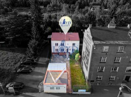 Výborně viditelný komerční objekt na křižovatce ulic Chebská a Kpt. Jaroše v Karlových Varech – Dvorech. Dříve zde bývala vyhlášená prodejna pracovních oděvů s panákem Máňou. Dvoupatrový podsklepený objekt s přístavbou v přízemí a půdou o celkové užitné ploše 142 m2. Nakládací rampa před objektem, dostatek parkovacích míst. Zateplené boční a zadní fasády. Sklep – sklepní místnost s plynoměrem a vodoměrem Přízemí – tři místnosti, WC, skladové prostory v přístavbě Patro – tři místnosti, koupelna se sprchou a WC, bojler Půda – volný prostor pod pultovou střechou, výška 2,2 metru v nejvyšším místě Vytápění plynovým kotlem, ohřev vody bojlerem. Kompletní inženýrské sítě, elektřina 3 x 25 A. Na oploceném pozemku dvě garáže, zděná 5,6 x 6,0 metru a plechová 4,0 x 6,0 metru. Na ploše před domem parkování pro 3 vozy. Celková plocha všech pozemků 367 m2. Široká možnost využití – prodejna, služby, kanceláře, ordinace, sídlo firmy. Místo, kde Vás nikdo nepřehlédne.