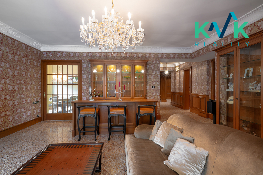 Nabízíme Vám k prodeji exkluzivní rezidenci situovanou na prestižní adrese v ulici U Imperiálu, v Karlových Varech. Luxusní byt v jedinečném italském stylu Art Nova o úctyhodné ploše 272 m² již při vstupu působí dojmem velkorysého moderního rezidenčního bydlení. Každý detail interiéru – od podlah, přes stěny až po nábytek a doplňky – byl navržen a realizován italskými architekty a designéry, což zde cítíte na každém kroku. Moderní podlahy Veneziana dotvářejí atmosféru elegance a nadčasovosti celého prostoru. Interiér je laděn do elegantních tónů a pracuje s nejkvalitnějšími materiály, které dodávají celému bytu mimořádnou atmosféru. Hlavnímu sálu dominuje akustická aparatura proslulé britské Hi-End značky Bowers and Wilkins pro audio poslech nebo domácí kino, která vytváří skutečný filmový zážitek přímo v pohodlí domova. Elegantně integrovaný bar podtrhuje společenský charakter tohoto prostoru a nabízí ideální místo pro setkávání s přáteli či rodinou. Nachází se zde celkem 6 pokojů, k hlavní ložnici náleží prostorná šatna s koupelnou a parní lázní. Ze čtyř pokojů je přístup na vlastní balkon s výhledem na řeku Teplou a lázeňské lesy. Naleznete zde i pokoj pro návštěvy a elegantní pracovnu. Na zakázku navržená kuchyň je vybavena německými prémiovými kuchyňskými spotřebiči značky Küppersbusch. Byt je pouze 9 let od kolaudace a je využíván jen příležitostně, což se projevuje na jeho vynikajícím stavu. Praktické úložné prostory, promyšlené dispoziční členění a nadstandardní vybavení tvoří základ exkluzivního životního stylu, který ocení i ti nejnáročnější zájemci. Součástí prodeje jsou dvě garážová stání přímo v suterénu bytového domu. Každé ráno se budete budit s krásným pocitem rozhrnout závěsy šité na míru a vyjít si s lázeňským pohárkem na nedaleký pramen Dorotka či Štěpánka v Japonských zahradách u hotelu Richmond. Přímo přes řeku Teplou se nachází Galerie umění a Goetheovou stezkou se příjemnou procházkou přesunete do centra kolonád, kaváren, restaurací a obchodů. Nebo můžete zvolit poklidnou vycházku lázeňskými lesy, které nabízejí desítky kilometrů udržovaných vyhlídkových a pěších stezek (např. směrem na Jelení skok, Goethovu vyhlídku či Tři kříže). Tato rezidence není pouze o bydlení – je to zážitek. Ideální pro klienta, který hledá nadčasový luxus, osobitý styl a inspirativní prostředí. Ve videu vás osobně provedu celým bytem, ukážu jednotlivé detaily a přiblížím, jak skutečně působí. V případě zájmu o prohlídku nás neváhejte kontaktovat.
