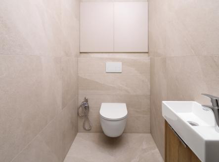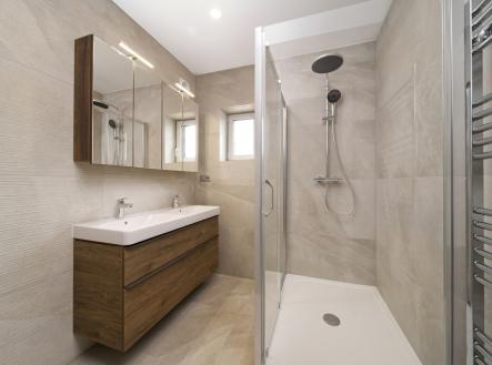 K dlouhodobému pronájmu nabízíme klimatizovaný byt 3+kk (71 m²) se zasklenou lodžií (9 m²) a vyhrazeným parkovacím stáním, situovaný v klidné části Karlových Varů v Bohaticích, ulice U Trati. Byt se nachází v nejvyšším 5. nadzemním podlaží energeticky úsporné novostavby (třída C). Dispozice bytu je velmi praktická. Ze vstupní předsíně je samostatný vstup do všech místností, a to do obývacího pokoje s kuchyňským koutem, ložnice, dětského pokoje, komory, koupelny a na samostatné WC. Z obývací části je přímý vstup na zasklenou lodžii, která nabízí krásný výhled na centrum města a široké okolí. Díky zasklení je možné lodžii pohodlně využívat i v chladnějších měsících. Velkorysé úložné možnosti nabízí podkrovní prostor přístupný po skládacích půdních schodech přímo z bytu (není zachyceno na fotografiích). K bytu náleží zděná sklepní kóje (2 m²) v suterénu domu. Součástí vybavení je moderní kuchyňská linka v nadčasovém designu, která zahrnuje vestavnou elektrickou troubu, indukční varnou desku, digestoř, myčku nádobí a ledničku s mrazákem. Koupelna je vybavena prostorným sprchovým koutem, dvojitým umyvadlem zasazeným do skříňky se šuplíky a praktickou zrcadlovou skříňkou. Nechybí ani přípojka na pračku a sušičku. Toaleta je oddělená a vybavena také bidetovou sprškou. V předsíni i obývacím pokoji se nachází vestavěné skříně na míru, které poskytují velkorysý úložný prostor. Celý interiér doplňuje moderní stropní i podlinkové osvětlení. Vytápění je podlahové, v koupelně navíc s topným žebříkem. Absence klasických radiátorů šetří prostor a umožňuje lepší uspořádání nábytku v interiéru. Teplo i teplá voda jsou dodávány centrálně, přičemž jejich spotřeba je měřena samostatně pro každý byt. Parkovací stání se nacházím na uzavřeném pozemku s automatickou bránou. Lokalita nabízí kompletní občanskou vybavenost, výbornou dostupnost MHD (autobusové linky č. 5 a 17) a zároveň i klidné prostředí vhodné pro rodiny. V blízkém okolí se nachází dětské hřiště, obchody, školka, sportovní areál a přírodní stezky, ideální pro procházky nebo cyklistiku. Cenové podmínky pronájmu: • Nájemné 19.900 Kč/měsíc • Zúčtovatelné zálohy na energie a služby vyjma elektřiny 3.600 Kč/1 osoba/měsíc 4.000 Kč/2 osoby/měsíc 4.400 Kč/3 osoby/měsíc 4.800 Kč/4 osoby/měsíc • Elektřinu si nájemce převádí na sebe (cca 1.500 Kč/měsíc) • Jistota (vratná kauce) 40.000 Kč • Provize RK 24.100 Kč Byt bude k nastěhování od 1.2.2026 (po dohodě i dříve). Pro bližší informace či domluvení prohlídky volejte na uvedený mobilní telefon. Pro zjištění rozměrů místností a objektů v prostoru využijte možnost měření ve virtuální prohlídce pomocí ikony pravítka v levém dolním rohu.