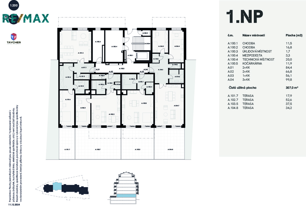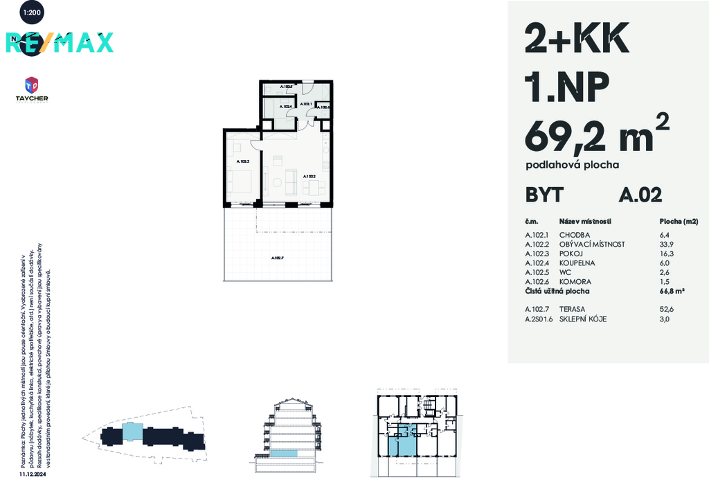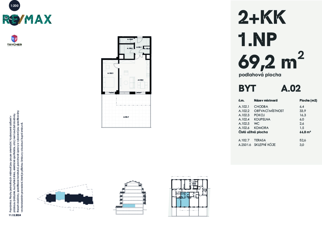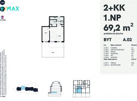 Prodej bytu A02, NOVOSTAVBA, 2+kk 69 m2 + terasa 52,6 + sklep