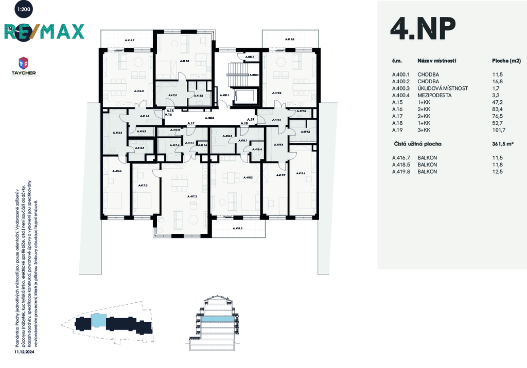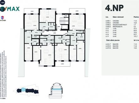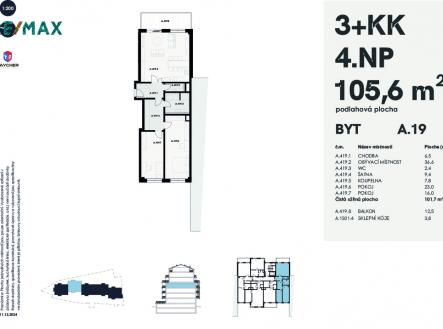 Prodej bytu A19, NOVOSTAVBA, 3+kk 105,6 m2 + balkon 12,5 m2 + sklep