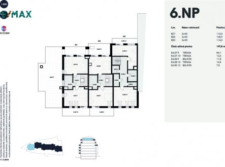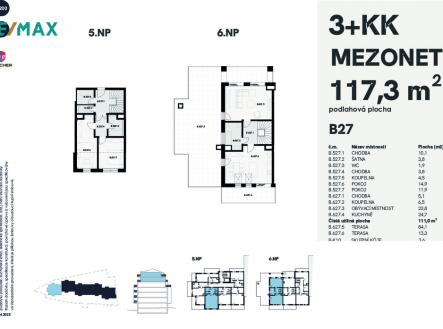 Prodej bytu č.27, 3+KK (mezonet), 5NP+6NP, 122m2 + 113,3m2 terasa / balkon, Šumavská, Karlovy Vary