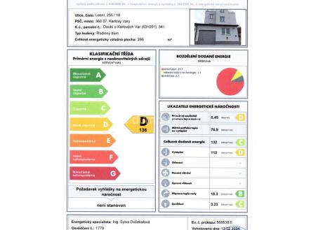 Naše společnost Vám zprostředkuje dlouhodobý pronájem bytu 2+1 v rodinné vile v Karlových Varech – Doubí, v ulici Lesní. Pronajímatel požaduje finančně prověřeného nájemníka - doložení bezdlužnosti. Bytová jednotka o velikosti 58,86 m² se nachází v 1. patře rodinného domu; součástí bytu je balkon a sklepní prostor v suterénu. Dům je umístěn v klidné části Doubí a má velkou zahradu; parkování je možné před domem. Okolní zástavbu tvoří pouze rodinné domy. Dům i byt je nově zrekonstruovaný, podlahy v pokojích jsou z plovoucí podlahy, v koupelně, WC, komoře a chodbě je dlažba. Součástí vybavení bytu je kuchyňská linka se spotřebiči (indukční varná deska, elektrická trouba, digestoř, myčka, lednička), samostatná koupelna s umyvadlem a skříňkou, vanou, samostatné WC. Vytápění bytu a ohřev teplé vody je zajištěn centrálně ústředním topením s plynovým kotlem, studená voda z veřejného vodovodního řadu, stejně tak kanalizace je napojena na veřejný řad. Byt je volný k nastěhování od 1. 2. 2026, případně po vzájemné dohodě se současnými nájemníky i dříve, zákaz kouření v celém objektu. Díky ideální poloze domu máte zaručený klid a veškerou občanskou vybavenost snadno a rychle dostupnou (parkování u domu, lékař, dětská hřiště, škola, školka, obchody, autobusy, vlak, centrum města, cyklostezka, dětské hřiště, les, rekreační a sportovní vyžití apod.). Nájem je splatný vždy do 15. dne daného měsíce a jeho výše činní 10 000 Kč + 4 000 Kč za služby pro jednu osobu (teplo, TUV, SV, svoz odpadu, el. ve společných prostorech apod.) + zálohy na elektrickou energii a vyúčtování si hradí nájemce sám, tj. smlouvu s dodavatelem elektrické energie si zajišťuje nájemce. Při podpisu rezervační nebo nájemní smlouvy je požadována vratná kauce ve výši 20 000 Kč + provize RK ve výši 10 000 Kč. Dům prošel celkovou rekonstrukcí a podle platné legislativy je pro dům zpracován PENB, kdy stavba je zařazena do energetické třídy D. Ev. číslo: 653392.