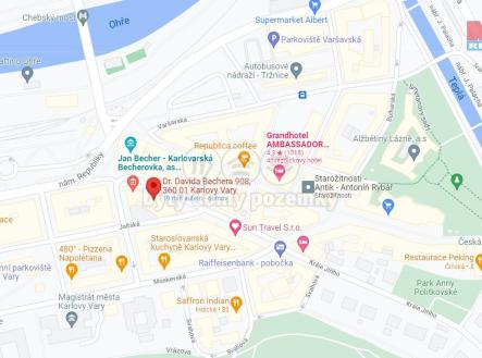 Nabízíme k pronájmu komerční prostory o celkové ploše 76 m2, v centru města Karlovy Vary na ulici Dr. Davida Bechera. Výhodou této lokality je, že se prostory nacházejí v centru města a proto nabízejí možnost širokého využití, například využívat jako obchod s potravinami, prodejnu oblečení, nebo ho můžete využívat dle vlastních představ (např. jako kancelář, sídlo firmy apod.). Nebytový prostor, který je umístěn v přízemí bytového domu, je tvořen ze tří místností, velké prodejní haly s výlohami, menší místnost jako sklad, technická místnost s kuchyni a samostatného WC. Nájemné a kauce ve výši 20 000 Kč, služby 5 000 Kč, reklama na štítu domu 500 Kč měsíčně. Elektřina se převádí na nájemce. Provize RK ve výši jednoho nájmu. Komerční prostor může sloužit také pro vlastní potřebu. Doporučujeme prohlídku.