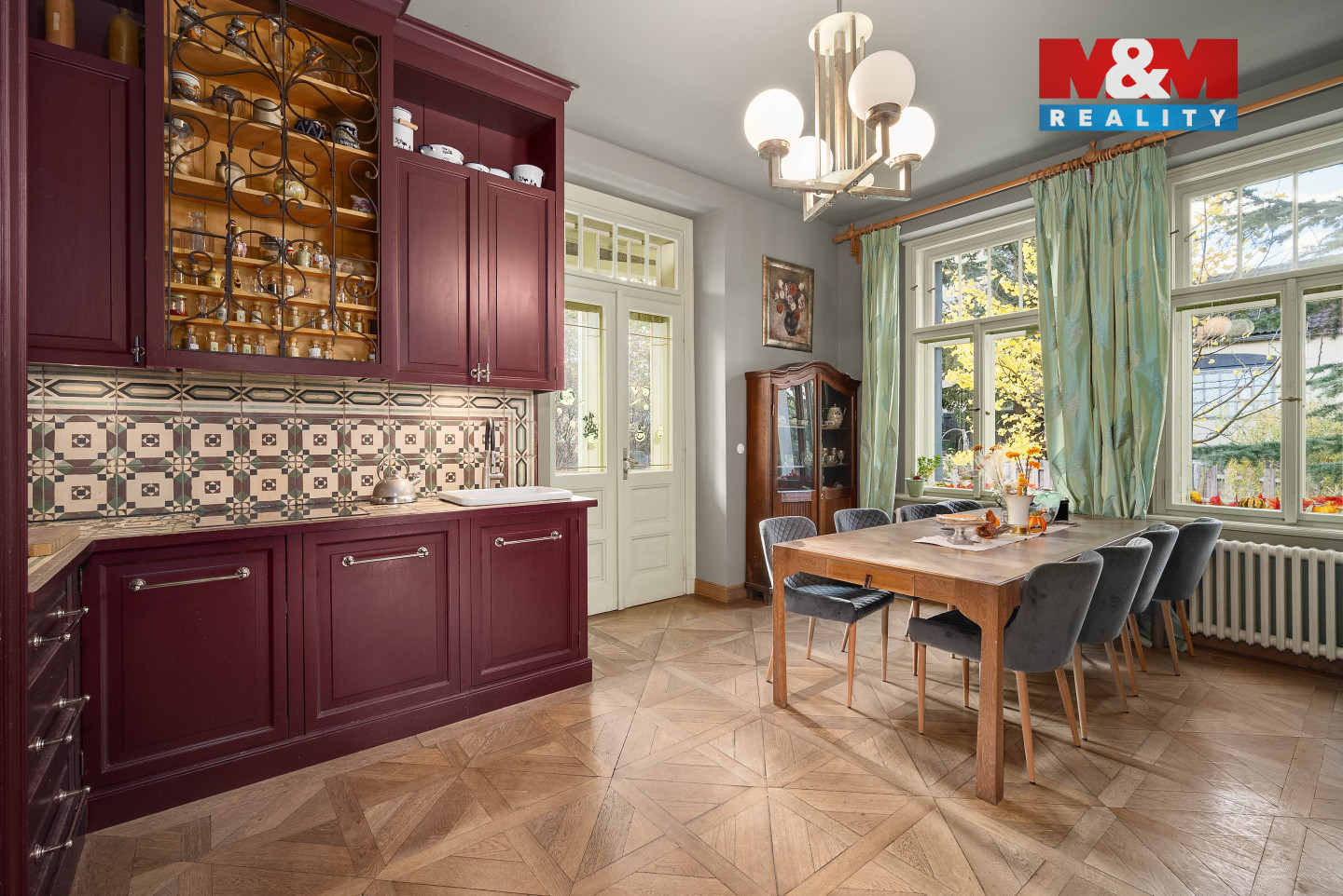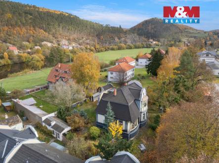 Hledáte kouzlo historie, které zůstalo zachováno v původním duchu? Nabízíme vilu z roku 1914, která byla v roce 2007 zrekonstruována s důrazem na zachování původního stylu. Dům je kompletně podsklepen, vytápění zajišťuje tepelné čerpadlo země voda, navíc jsou v domě 3 designová kamna za účelem lokálního vytápění a příjemné atmosféry. Interiéry jsou vybaveny dřevěnými podlahami (kazetové palubky), vestavěný dřevěný nábytek, kuchyňská linka, interiérové dveře. V současné době je dům využíván dvougeneračně s možností rozšíření obytných prostor na půdě. Vlastní, rovinatý pozemek o celkové výměře 1405 m2, na němž najdete letní kuchyni s pergolou, zahradní koupací jezírko, skleník, zděný zahradí domek, zimní zahradu. Vila je umístěna v městysi Karlštejn, cca 13 km východně od Berouna a 30 km jihozápadně od centra Prahy. Leží uprostřed chráněné krajinné oblasti Český kras. Dominantou obce je hrad Karlštejn a jedinečná příroda obklopující tuto lokalitu, vč. řeky Berounky.