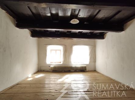 Motto: čeká na majitele, který porozumí kráse historického domu skryté pod závojem času…. Pozemky: Celkem 1.006 m2, z toho – zast.plocha a nádvoří 718 m2, zahrada 288 m2. Lokalita: ŠUMAVA – KAŠPERSKÉ HORY, 750 m n.m. brána do Šumavského národního parku – nejvýše položené gotické město v Čechách má jedinečnou atmosféru a skvělou perspektivu v rozvoji cestovního ruchu a lázeňství. Hotely, restaurace,malý pivovar, muzea,hrad Kašperk, SKIAREÁL. Poloha: náměstí v dosahu tří minut chůze. Přístupný z měst. komunikace, obytné částí orientované na jihozápad - do skryté zahrady poskytující soukromí. Prolínání historie a současnosti vytváří kouzelný genius loci. Stabilní investice pro majitele, který ocení přednosti domu, doladí interiéry a učiní z něj nemovitost k bydlení a rekreaci. Dům poskytuje velkorysý prostor využitelný k adaptaci pro soukromou část majitele. V nedávné době byl pro svoji originalitu a výzmanost zapsán na seznam nemovitých kulturních památek–to umožňuje čerpání dotací. K dispozici je digitální zaměření stávajícího stavu. Popis: původní měšťanský dům s historií, o níž svědčí řada prvků jako zázrakem zachovaných v interiérech. Dům nevykazuje statické poruchy, ani nepřiměřenou vlhkost–i když nebyl v posledních letech obýván. Pod střechou z plechových pásů je krov v dobrém stavu. Dřevěná okna i podlahy původní. Mohutné obvodové a nosné zdivo, zaklenutí a niky, černá kuchyně, trámové stropy – to vše vytváří autentické prostředí – jako by dům chtěl vyprávět svůj příběh… Vnitřní dispozice: částečné podsklepení se stanicí městské výtopny na biomasu má kamenné klenutí a je přístupné ze vstupní haly. Dům má dvě křídla na půdorysu písm.L otevřeném do klidu zahrady. Přízemí kratšího křídla domu s vlast.vstupem ze zahrady zabírá krásná velká místnost s trámovým stropem. Přízemí delšího křídla domu s vlast. vstupem ze zahrady do velkorysé haly s dřevěným ochozem. Odtud vstup do prostorného obývacího pokoje s krbem spojeného s kuchyní – a z něj do další místnosti situované okny do zahrady. Koupelna a samost.WC přístupné z chodby. Z ochozu vstup do patra s předsíní a pokojem. Zbytek přízemí zaujímá garáž se zaklenutým vjezdem. Rozsáhlý půdní prostor pod sedlovým krovem nad oběma křídly domu jehož výška umožňuje vestavbu obyt.podkroví. Inž. sítě: elektřina–230/400 V z distrib.sítě ČEZ. Vytápění-ústřední teplovodní-dům je napojen na městskou výtopnu biomasou. Kanalizace – do řadu města. Zdroj pitné vody – z řadu města. Komunikační napojení – přímé na komunikaci města.