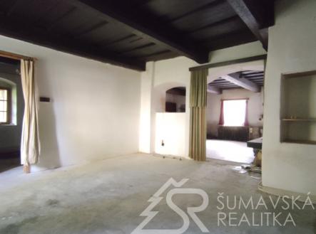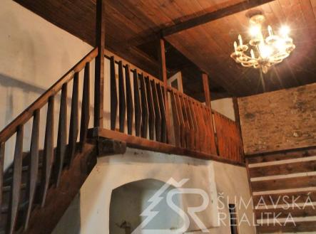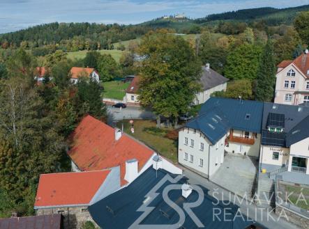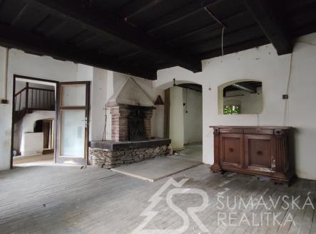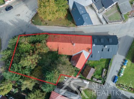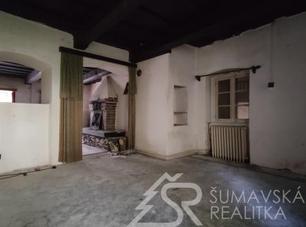 Rezervováno. Motto: čeká na majitele, který porozumí kráse historického domu skryté pod závojem času…. Pozemky: Celkem 1.006 m2, z toho – zast.plocha a nádvoří 718 m2, zahrada 288 m2. Lokalita: ŠUMAVA – KAŠPERSKÉ HORY, 750 m n.m. brána do Šumavského národního parku – nejvýše položené gotické město v Čechách má jedinečnou atmosféru a skvělou perspektivu v rozvoji cestovního ruchu a lázeňství. Hotely, restaurace,malý pivovar, muzea,hrad Kašperk, SKIAREÁL. Poloha: náměstí v dosahu tří minut chůze. Přístupný z měst. komunikace, obytné částí orientované na jihozápad - do skryté zahrady poskytující soukromí. Prolínání historie a současnosti vytváří kouzelný genius loci. Stabilní investice pro majitele, který ocení přednosti domu, doladí interiéry a učiní z něj nemovitost k bydlení a rekreaci. Dům poskytuje velkorysý prostor využitelný k adaptaci pro soukromou část majitele. V nedávné době byl pro svoji originalitu a výzmanost zapsán na seznam nemovitých kulturních památek–to umožňuje čerpání dotací. K dispozici je digitální zaměření stávajícího stavu. Popis: původní měšťanský dům s historií, o níž svědčí řada prvků jako zázrakem zachovaných v interiérech. Dům nevykazuje statické poruchy, ani nepřiměřenou vlhkost–i když nebyl v posledních letech obýván. Pod střechou z plechových pásů je krov v dobrém stavu. Dřevěná okna i podlahy původní. Mohutné obvodové a nosné zdivo, zaklenutí a niky, černá kuchyně, trámové stropy – to vše vytváří autentické prostředí – jako by dům chtěl vyprávět svůj příběh… Vnitřní dispozice: částečné podsklepení se stanicí městské výtopny na biomasu má kamenné klenutí a je přístupné ze vstupní haly. Dům má dvě křídla na půdorysu písm.L otevřeném do klidu zahrady. Přízemí kratšího křídla domu s vlast.vstupem ze zahrady zabírá krásná velká místnost s trámovým stropem. Přízemí delšího křídla domu s vlast. vstupem ze zahrady do velkorysé haly s dřevěným ochozem. Odtud vstup do prostorného obývacího pokoje s krbem spojeného s kuchyní – a z něj do další místnosti situované okny do zahrady. Koupelna a samost.WC přístupné z chodby. Z ochozu vstup do patra s předsíní a pokojem. Zbytek přízemí zaujímá garáž se zaklenutým vjezdem. Rozsáhlý půdní prostor pod sedlovým krovem nad oběma křídly domu jehož výška umožňuje vestavbu obyt.podkroví. Inž. sítě: elektřina–230/400 V z distrib.sítě ČEZ. Vytápění-ústřední teplovodní-dům je napojen na městskou výtopnu biomasou. Kanalizace – do řadu města. Zdroj pitné vody – z řadu města. Komunikační napojení – přímé na komunikaci města.