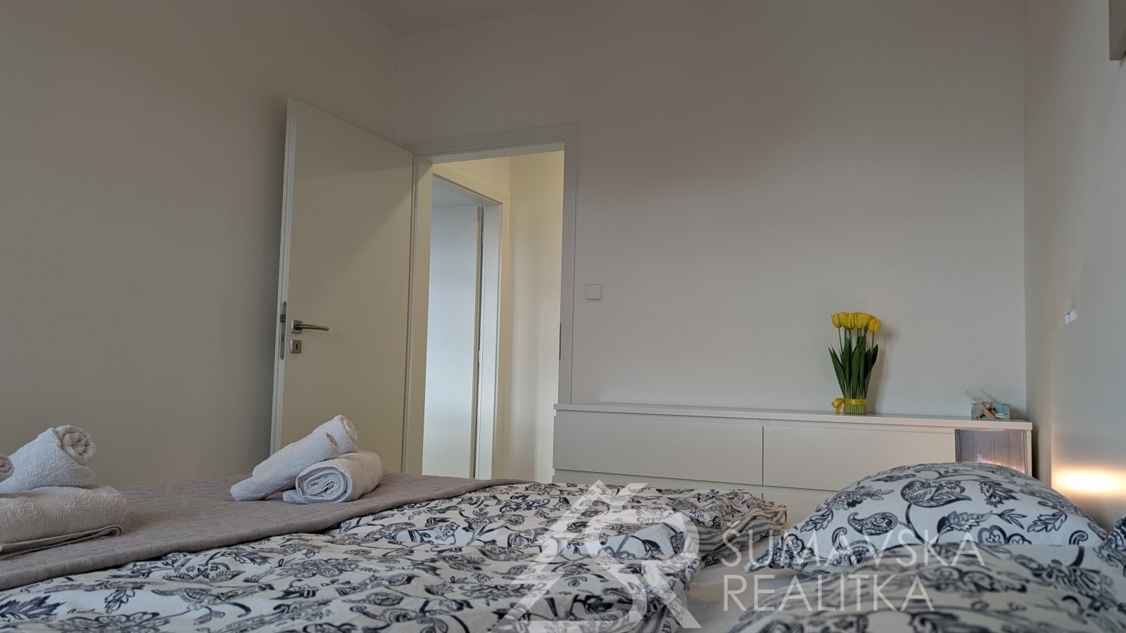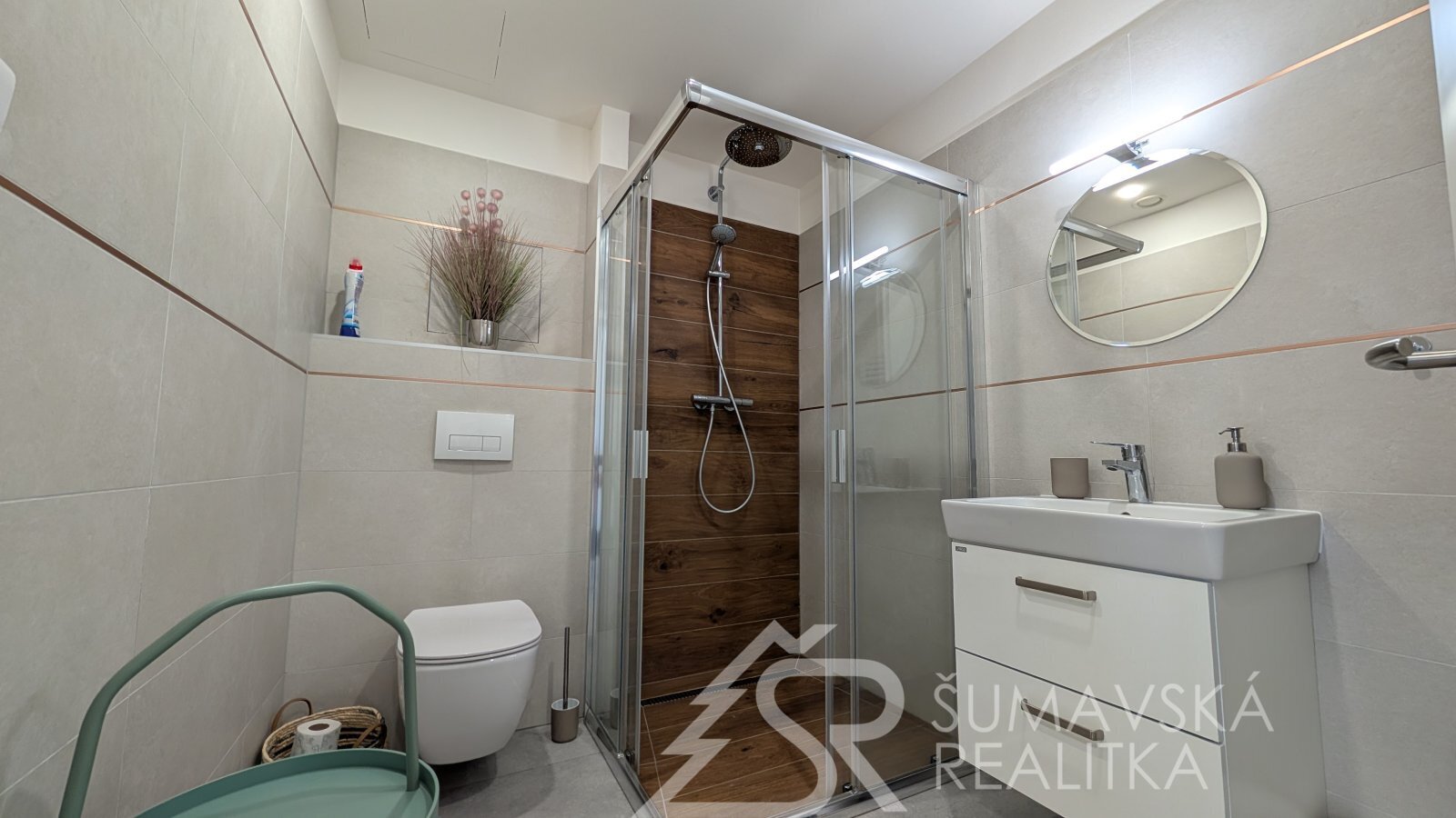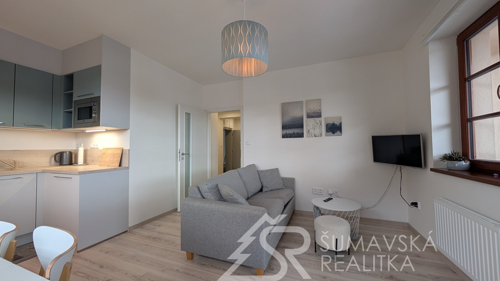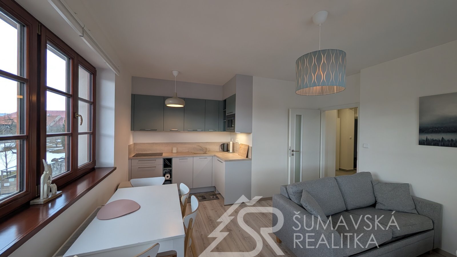 SLUNNÝ BYT 2+KK V NOVÉM BYTOVÉM DOMĚ V KAŠPERSKÝCH HORÁCH. Lokalita: Kašperské Hory jsou velice obdivovány turisty, pro které je zde připraveno mnoho poznávacích okruhů a značených turistických cest. Oblíbili si je i cyklisté pro nepřeberné množství náročných i pohodových poznávacích tras po Šumavě a jeho podhůří. Častou zastávku zde mají i automobilisté a motorkáři, vždyť se jedná skoro o jediné město na Šumavě, kde pohodlně zaparkujete, občerstvíte se třeba i v místním pivovaru, nebo se najíte v tak vyhlášených restauracích jako je Nebespán, hotel Kašperk, nebo Baštírna u Tomáše. Milovníci dobré kávy jistě zavítají do místní pražírny. Oblíbené jsou i pro filmaře pro nádhernou okolní krajinu (Policie Modrava) či pro historický nadhled hradu Kašperk (Anděl páně). Oblíbit si je musí i zájemci o historii a to nejen pro nejvýše položený královský hrad, ale i pro 28 nemovitých kulturních památek ve městě a okolí. Oblíbené jsou i pro bohatý kulturní celoroční program se spoustou různorodé hudby a filmových představení. I v zimním období jsou oblíbené pro sjezdaře na místním ski areálu a běžkaře na projížděných bílých stopách. Popis: klasicky zděný bytový dům o 13 bytech byl realizovaný podle kvalitního autorského projektu arch. Radima Hucla. Je vybavený výtahem, v krásné poloze s výhledem na šumavská panoramata v jižně orientovaném pozemku, cca 2 min. pěší chůze od náměstí. Součástí bytu je i venkovní parkovacího stání. Komfortní byt je vybaven kvalitními standardy a výhodou je jižní balkón. Dům je připojen na městskou výtopnu biomasou, byt má samostatné měření tepla, vody a elektřiny. Jedná se o byt ve 2.NP o dispozici 2+kk a podlahové ploše 47 m2. Z chodby vybavené skříní a botníkem jsou vstupy do prostorného a prosvětleného obývacího pokuje s velkou kuchyňskou linkou, jídelním stolem a sedací soupravou. Lodžie s orientací na jih poskytuje výhled na lyžařský areál i možnost pobytu na čerstvém šumavském vzduchu. Samostatná ložnice s jižním oknem může sloužit i jako dětský pokoj. Velkorysá je i koupelna se sprchovým koutem, závěsným WC a pračkou. K bytu je sklepní kóje v přízemí, společná kolárna a jedno soukromé parkovací stání u domu. Objekt je dokonale zateplen a s okny s izolačními trojskly poskytuje perfektní tepelnou pohodu s minimálními náklady na vytápění.