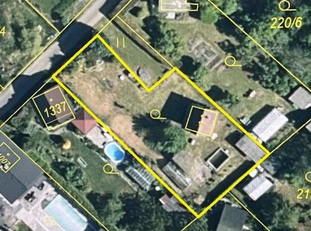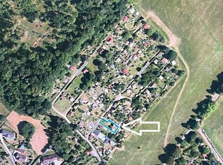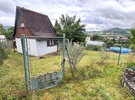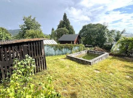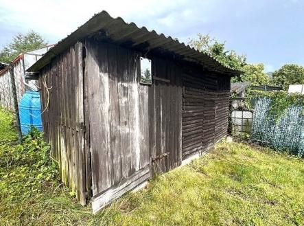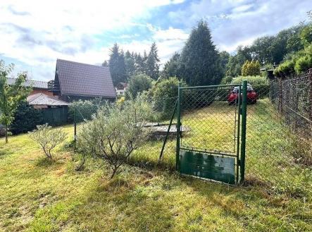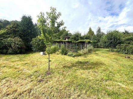 Zahrada 458 m2 se zahradní chatkou v okrajové části obce Kdyně.