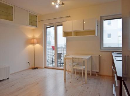 Moderní nízkoenergetický byt 1+kk, 35 m2 s balkonem v novostavbě, která se nachází v sousedství velkého lesoparku Bažantnice. V obývacím pokoji je designová kuchyňská linka s plně integrovanou vestavnou myčkou, mikrovlnou troubou, varnou deskou, vestavnou lednicí a digestoří. V chodbě jsou přes celou stěnu vysoké vestavné skříně. Koupelna s vanou a skleněnou transparentní zástěnou je společná se závěsným WC. K bytu patří velká komora přímo naproti bytu. V blízkosti domu se nachází OC OÁZA, TESCO, SHOPPING JIH, pošta + veškerá ostatní občanská vybavenost v okolí. Skvělá dostupnost do Prahy. Volné od 1. 3. 2026.