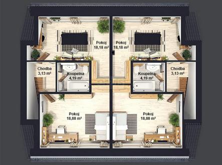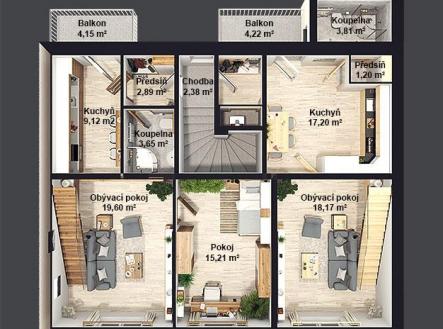Nabízíme k prodeji nový, mezonetový byt 3+1 v osobním vlastnictví s balkónem (4,2 m2) v Kladně - Švermově - probíhá výstavba (dokončení plánováno na 10/2025). Byt o čisté obytné ploše 90 m2 se nachází v prvním a druhém patře zděného domu se třemi byty (další dva nové byty 3+kk a 4+1/B také k dispozici). Jedná se o nově vzniklou bytovou jednotku se dvěma koupelnami. Kupující může zvolit z finálních povrchů - obkladů, dlažeb, podlah, obložkových dveří. Vytápění v celém bytě podlahové teplovodní z vlastního plynového kotle přes který je řešen i ohřev vody. K bytu náleží sklepní kóje (4,3 m2), vlastní půda ze vstupem z chodby ve druhém patře (15,82 m2, kompletně foukaná izolace chytrou pěnou v podkroví) a dále k užívání pozemek vnitro-bloku o výměře 52 m2 spolu se dvěma dalšími bytovými jednotkami. V ceně je zahrnuto také také vlastní parkovací stání u domu. Bližší informace v RK. Financování možné hypotékou. Rádi vyřídíme.