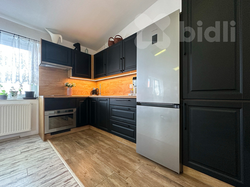 Ideální na bydlení i jako investiční příležitost na pronájem. Ve výhradním zastoupení majitele nabízíme k prodeji atypický, jižně orientovaný byt 3+KK s celkovou výměrou 73,8 m2, nacházející se v celém 2. NP zděné stavby z r. 2011, v okrajové části Kladna-Švermov, katastr. území Hnidousy . V této stavbě jsou vymezeny pouze 2 jednotky. V přízemí se nachází provozovna prodejny chovatelských potřeb, otevřená od pondělí do pátku 9-17hod. Byt má samostatný vchod. Od silnice se uzamykatelnou brankou vchází na zatravněný menší pozemek, kde je možné po stranách vysázet květiny, pěstovat v truhlíkách např. rajčata, jahody, bylinky., dát dětem pískoviště, lavičku k posezení, případně i gril. Z přízemí se po dřevěných schodech dostaneme do prostorné předsíně, kde je vchod na samostatné WC, do koupelny se sprchovým koutem, WC, pračkou a kotlem a dále pak vstupujeme do obývacího pokoje s kuchyňským koutem, vyrobeným na míru a vybaveným myčkou, indukční 2 plotýnkou, mikrovlnnou troubou s grilem, nerezovým dřezem a digestoří. Z obývacího pokoje se vchází do průchozího pokoje, který nyní slouží jako ložnice a dále pak do třetího pokoje. Z tohoto pokoje je možné vyjít na menší dřevěnou podestu, která může po úpravě a dohodě s druhým majitelem, sloužit k posezení. Byt prošel zdařilou rekonstrukcí. Nově je rozvedená elektřina a topení v mědi, nový elektrokotel, nové interiérové dveře s obložkovými zárubněmi, na podlahách je plovoucí podlaha a dlažba. K dispozici je i úložný prostor v nářaďovně umístěné u vstupu do bytu. Benefitem tohoto bytu jsou nízké náklady na bydlení (voda 1.000,- Kč/měs. a elektřina cca 4.000,- Kč/měs.). Možnost parkování přímo u domu. Doporučujeme prohlídku. Byt je vhodný k rodinnému bydlení, ale i jako investice na pronájem. Byl pronajímán za 18 tis. Kč/měs. + služby. Elektřina byla na nájemníka. Lze financovat hypotékou nebo Ulice 28. října nabízí pohodlné městské bydlení s perfektní dostupností - potraviny, doprava, restaurace a služby v docházkové vzdálenosti. V okolí jsou rodinné i developerské projekty, což svědčí o rezidenční dynamice lokality. V nejbližším okolí je odpočinková zóna revitalizovaného bývalého dolu Ronna nebo vodní park Čabárna. Před domem je zastávka autobusů, které vás do 10 minut odvezou do centra Kladna nebo za 45 minut na pražskou stanici metra linky A Nádraží Veleslavín. Vlaková stanice Kladno-Švermov cca 15 min chůze od ulice 28. října, odkud je vlakové spojení do centra Kladna i Prahy.