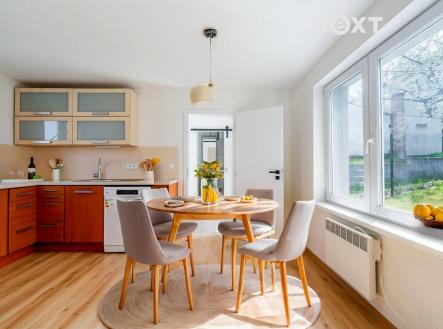 Exkluzivně vám představuji nabídku kompletně zrekonstruovaného rodinného domu o dispozici 2+kk. Dům je postaven na pozemku o celkové výměře 184 m². Dispozičně je řešen vstupní předsíní, ze které je přístup do jednotlivých místností domu. Po levé straně se nachází vstup do obývacího pokoje s kuchyňským koutem, jehož okna jsou orientována do zahrady. Kuchyňský kout je vybaven kuchyňskou linkou, varnou deskou, troubou a myčkou nádobí. Dále je zde vstup do koupelny, která je vybavena sprchovým koutem, toaletou, umyvadlem, koupelnovým nábytkem a nechybí ani topný žebřík. Přímo naproti vstupním dveřím se nachází komora pod schody, kde je k dispozici přípojka na pračku a sušičku. Druhé dveře vedou do podkroví domu, které lze ponechat jako jeden velký vzdušný prostor, případně ho rozdělit dle vlastních potřeb. Volné chvíle můžete trávit na jižně orientované zahradě, kde je vybudované příjemné zahradní posezení. Většina pozemku je zatravněna, což umožňuje jeho využití jak pro pěstování domácích plodin, tak i pro okrasné rostliny. V okolí domu je mnoho možností pro volnočasové aktivity v přírodě – okolní lesy jsou doslova protkány cyklostezkami a turistickými trasami. V této části Kladna je k dispozici základní občanská vybavenost – mateřská i základní škola, sportoviště a několik obchodů. Zastávka městské hromadné dopravy s výborným spojením po celém Kladně je v docházkové vzdálenosti do 5 minut. Parkování je bezproblémové a volně dostupné v přilehlé ulici. Pokud tedy hledáte klidné a pohodové bydlení s nízkými provozními náklady, tato nabídka je určena právě pro vás. Pro komunikaci uvádějte evidenční číslo zakázky N111509.