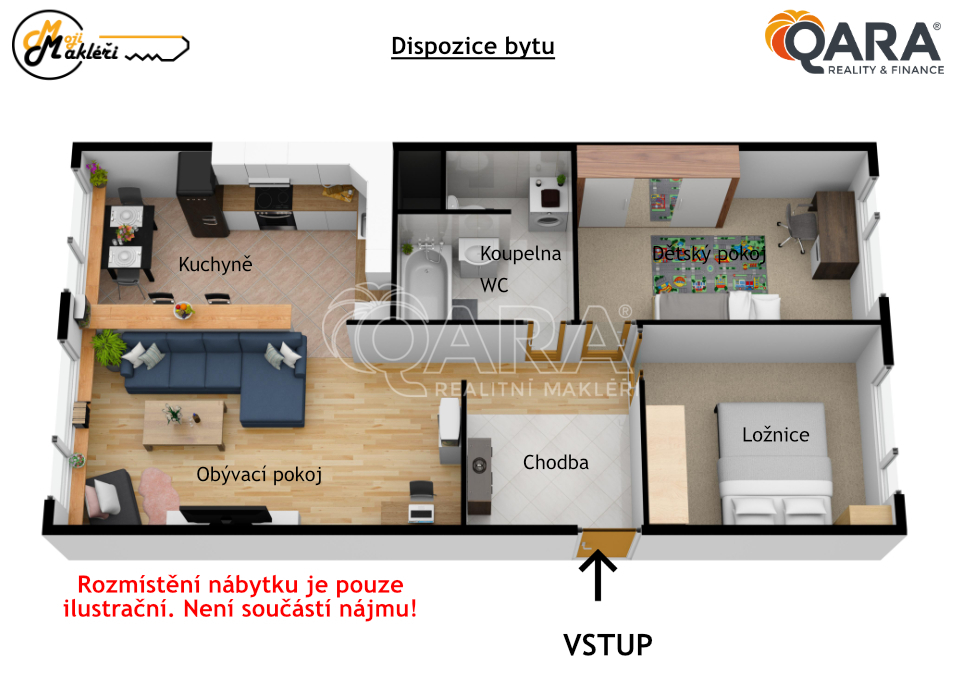 Nabízíme k pronájmu světlý a dobře řešený byt 3+1 o užitné ploše 69 m2, ke kterému náleží komora na patře (2 m2) umístěná přímo naproti bytu a sklepní kóje. Byt se nachází v 8. (posledním) patře revitalizovaného panelového domu s krásnými výhledy do okolí. Na patře je k dispozici také společný balkon orientovaný směrem k Sítenskému údolí. Byt je volný a připravený k nastěhování OD 15. LEDNA 2026 (prohlídky jsou plánovány na pondělní odpoledne). Vstupní předsíň je prostorná a vede do všech neprůchozích pokojů. Obývací pokoj je propojený s kuchyňským a jídelním koutem, který je vybaven spotřebiči (myčka není aktuálně k dispozici, lze dodat po dohodě s majitelem). Dále jsou k dispozici ložnice a dětský pokoj nebo pracovna. Koupelna je vybavena vanou a prostorem pro pračku i sušičku, toaleta je částečně stavebně oddělená. Obývací pokoj s kuchyní je orientován na jihovýchod, ložnice a dětský pokoj na severozápad, což zajišťuje dostatek světla a příjemnou atmosféru. Byt se pronajímá částečně vybavený dle fotografií. Lokalita Sítná je vyhledávaná pro klidné prostředí, množství zeleně a výbornou dostupnost do Prahy i do centra Kladna. Obchod Albert, škola, školka i autobusová zastávka Kladno–Sítná jsou v docházkové vzdálenosti několika minut, stejně jako sportovní areály a oblíbené Sítenské údolí. Cenové podmínky: Nájemné činí 18 000 Kč měsíčně Zálohy na služby při 3 osobách 5 000 Kč (každá osoba méně –500 Kč, každá osoba navíc +500 Kč) Elektřina se převádí na nájemníka Kauce je 36 000 Kč Zájemce o bydlení neplatí provizi makléři zastupujícího majitele bytu. V případě zájmu o prohlídku prosím primárně o reakci pomocí odpovědního formuláře u tohoto inzerátu.