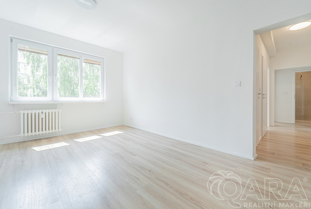 Nabízíme pronájem světlého bytu 3+kk po celkové rekonstrukci s podlahovou plochou 53 m². Byt nabízí dva samostatné pokoje, šatnu s přípojkou na pračku, koupelnu se sprchovým koutem a samostatné WC. Bytová jednotka je ve 3.patře bez výtahu. Kuchyně disponuje novými spotřebičemi - myčka, trouba, lednice s mrazákem, mikrovlnná trouba. Nájemné 16.900,- Kč, Záloha na služby (voda, teplo, elektřina spol. prostor) 3.980,- Kč, / 4 osoby Záloha na elektřinu 2.000,- Kč / 4 osoby Kauce 20.000,- Kč, Provize RK Pozn. výše záloh na elektřinu a služby může být změněna podle počtu osob K DISPOZICI OD 1.3.2026 ! K bytu je k dispozici také sklepní kóje a kolárna/kočárkárna v přízemí domu. V místě se nachází kompletní občanská vybavenost. Výborné dopravní spojení - zastávka MHD. V docházkové vzdálenosti je lesopark Bažantnice s letním koupalištěm, rybníkem a cyklostezkami.