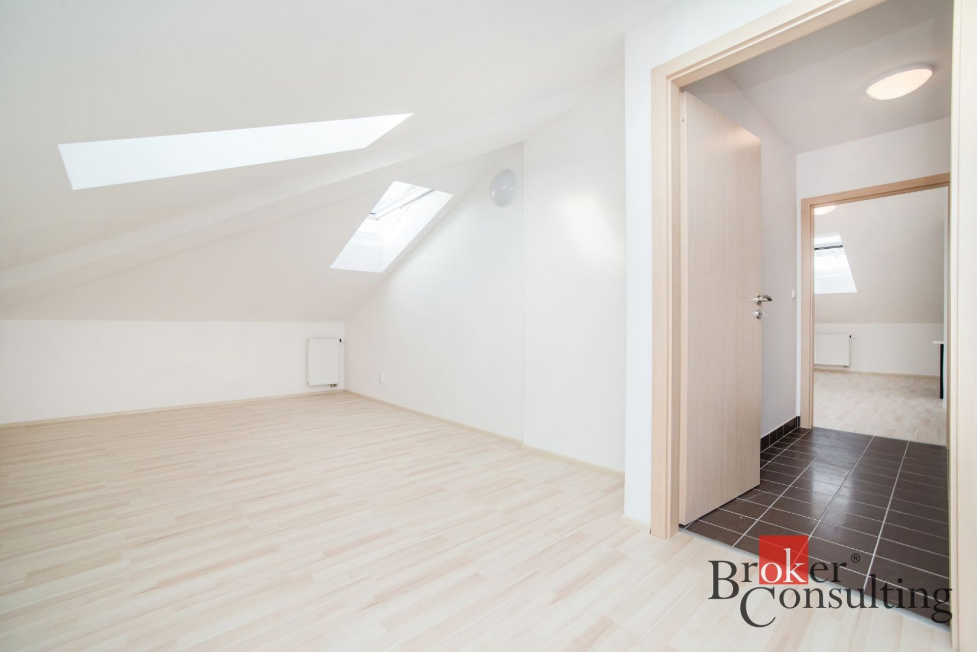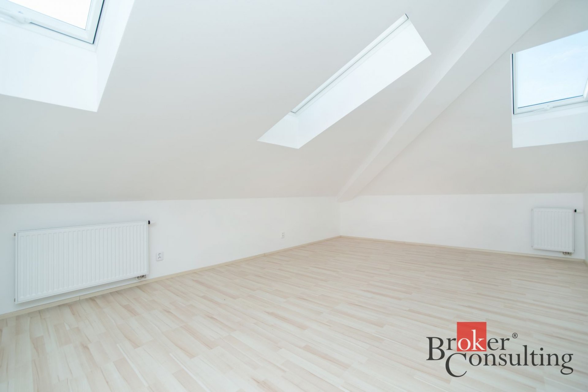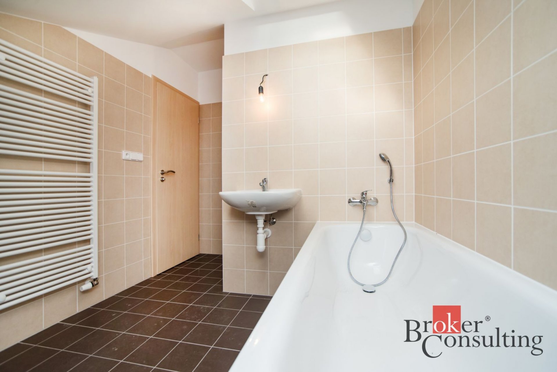 Nabízíme pronájem podkrovního bytu 2+KK v 6.patře v tiché ulici generála Selnera v Kladně. Podlahová plocha je 86,9m2 ale díky zkosené střeše uvádíme 66,9m2. Byt se skládá z menší ložnice, prostorového obývacího pokoje s kuchyňským koutem, koupelny s vanou a záchodem který je součástí koupelny - oddělený stěnou. Před bytem je prostorná komora/sklad. Parkovací stání před domem v ceně. Je vybaven kuchyňskou linkou s myčkou. Skvělá dostupnost do Prahy (autem 25 km), MHD 100 m od domu, občanská vybavenost kompletní (OC Oáza 100 m, školka 300 m, škola 200 m, oplocené dětské hřiště v polouzavřeném vnitrobloku). Celkem je potřeba zaplatit pro nastěhování: Nájem na první měsíc 15.000kč + poplatky (topení, voda, spol. elektřina, úklid spol. prostor), jedna vratná kauce 25.000 Kč a provize v hodnotě jednoho nájmu +21% DPH. Budeme se těšit na prohlídce.