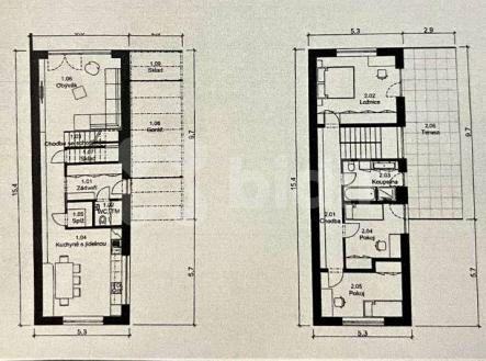 STAVBA ZAHÁJENA. Dokončení ve 1. čtvrtletí 2026. Výhodou je forma financování. Platíte pouze 10 % kupní ceny po uzavření SOSBK, zbývající část kupní ceny až po kolaudaci. Bidli nabízí k prodeji krajní řadový dům 4+1 v novém developerském projektu Sedmdomů v okrajové části Kladna. Jedná se o projekt sedmi moderních řadových domů 4+1 se zahradou, v klidné lokalitě, ideální pro rodinné bydlení, nacházející se na okraji Kladna, ve slepé ulici, mimo hlavní dopravní tahy. Domy budou postaveny "na klíč", včetně oplocení a základních terénních úprav. Zahradami sousedí s loukou, zahrádkářskou kolonií a vzrostlým lesem. Jsou převážně severojižní orientace, s mírným natočením delší stranou na jihovýchod. Oddělení jednotlivých domů garáží s terasou nabízí obyvatelům dostatek soukromí. Pultová střecha je navržena tak, aby co nejméně stínila domu sousednímu, což zajišťuje světlost interiérů. V přízemí domu S 02 se nachází zádveří (6 m2), WC (2 m2), chodba (10 m2), samostatná kuchyně s jídelnou (21,5 m2), spíž (2 m2), obývací pokoj (18,5 m2) s přímým vstupem na zahradu, 2 x sklad (2 m2 a 4,5 m2) a garáž (15,5 m2). V patře jsou 3 neprůchozí pokoje (17 m2, 10 m2, 11,5 m2) s prostornou koupelnou (6,5 m2) a s terasou (27,5 m2). V celém domě bude podlahové topení. Vytápění bude zajišťovat tepelné čerpadlo All-in-one. Celková velikost pozemku parc. č. 828/14, na němž se dům nachází, je 295 m2. Výhodou je způsob financování. Po rezervaci domu se platí pouze 10 % kupní ceny na základě Smlouvy o smlouvě budoucí kupní a zbývající část kupní ceny se doplácí až po kolaudaci domu. Kladno je okresním a zároveň největším městem ve Středočeském kraji s veškerou občanskou vybaveností. Je zde velký počet školek, ZŠ, střední školy a dokonce 2 vysoké školy, lékaři, obchody, restaurace, sportovní kluby, Aquapark, hřiště, parky. Vynikající dopravní dostupnost autem po D6 nebo D7 (letiště 15 min, Zličín 20 min.), vlakové a autobusové přímé spojení do Prahy.