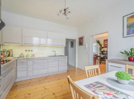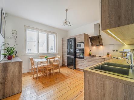 Nabízíme k prodeji rodinný dům, který se nachází v klidné rezidenční části Kladna - Rozdělov, v ulici Žerotínova. Objekt je vhodný pro vícegenerační bydlení, případně pro kombinaci rezidenčního a investičního využití. V přízemí domu se nachází předsíň, koupelna s WC, kuchyně a prostorný obývací pokoj o ploše 41 m². V prvním patře jsou situovány tři ložnice a druhá koupelna s WC. Dům je plně podsklepený. V půdním prostoru je možnost rozšíření obytné plochy až na celkových cca 220 m². Stavební dispozice umožňuje jednoduchou přestavbu na dvougenerační dům. Dům prošel před 13 lety částečnou rekonstrukcí se zachováním původních prvků. Vytápění a ohřev vody zajišťuje plynový kotel Protherm. Součástí pozemku je udržovaná zahrada s altánem a samostatně stojící garáž s elektricky ovládanými vraty. Dům je vybaven elektronickým zabezpečovacím systémem Jablotron. Lokalita nabízí kompletní občanskou vybavenost a dobré dopravní spojení. V docházkové vzdálenosti se nachází sportovní areály, aquapark, nemocnice, cyklostezky a les. Připravovaná železniční rychlodráha a blízký nájezd na dálnici D6 zajišťují rychlou dostupnost do Prahy.