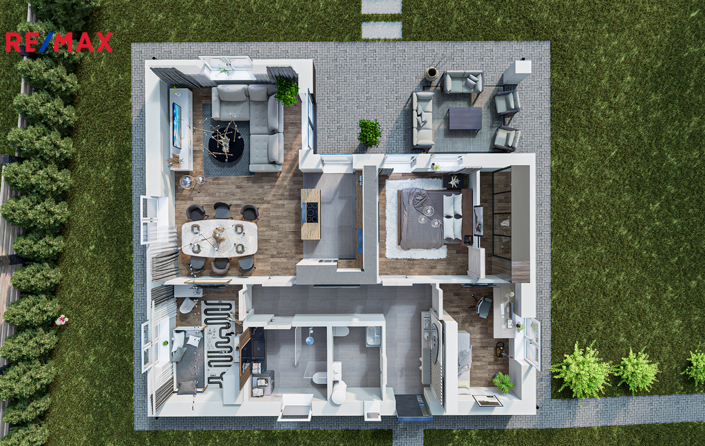 Máte sen o moderním, úsporném a klidném bydlení. Rádi byste své rodině dopřáli skutečně kvalitní domov a nechcete se spokojit s běžným standardem současné výstavby? V obci Kladruby u Teplic pro Vás právě vzniká exkluzivní přízemní novostavba rodinného domu o dispozici 4+kk, která vyniká nejen architektonickým řešením, ale i promyšleným zázemím, nadstandardními materiály a nejmodernějšími technologiemi. Dokončení je plánováno do konce roku 2025. Dům je umístěn na pozemku o výměře 1 032 m² s užitnou plochou 94 m². Dispozice je navržena tak, aby přirozeně propojovala obývací prostor s kuchyní a jídelním koutem, který plynule navazuje na krytou terasu o velikosti 21 m² - ideální pro relaxaci, grilování i víkendové snídaně. Důraz byl kladen na technickou kvalitu – dům je postaven z pórobetonových tvárnic Ytong a osazen okny s trojskly s přípravou na venkovní žaluzie. O tepelný komfort se postará tepelné čerpadlo vzduch–voda v kombinaci s teplovodním podlahovým vytápěním. Dům bude navíc vybaven centrální rekuperační jednotkou, která zajistí stálý přísun čerstvého vzduchu bez tepelných ztrát. Z hlediska interiérových prvků Vás jistě potěší zdravější sádrové omítky, lepený vinyl v kombinaci s keramickou dlažbou i sádrokartonové podhledy s LED osvětlením. Vizualizace projektu slouží jako inspirace. Nemovitost bude připravena k nastěhování - vyjma nábytku a kuchyňské linky. Koupelna a technická místnost budou plně vybavené. Součástí dokončení jsou také terénní úpravy, oplocení pozemku (přední část ze štípaných betonových bloků, zbylá část z drátěných plotových panelů) včetně branky, elektrické brány a zpevněných ploch. Dešťová voda bude sváděna do retenční nádrže o objemu 8 m³. Dům je napojen na elektro, vodu a obecní kanalizaci (kolaudace kanalizace je plánována na konec roku 2025). Jedná se o nízkoenergetický rodinný dům, jehož energetická náročnost odpovídá třídě B, což zajišťuje velmi nízké provozní náklady. Vjezd na pozemek je zajištěn stávajícím sjezdem z místní komunikace. Součástí je nekryté parkovací stání pro dva automobily, v případě zájmu lze zajistit i výstavbu garáže Kladruby nabízejí klidné bydlení v přírodě s výbornou dostupností města. Dům je součástí nové rezidenční čtvrti a díky umístění na konci slepé ulice nabízí klid, minimální provoz a dostatek soukromí. V místě i okolí je veškerá občanská vybavenost. Obec leží pár minut od dálnice D8 s rychlým spojením na Prahu i k hranicím. V budoucnu je v plánu napojení na Kladrubskou spojku (I/13–D8). Tento dům je ideální volbou pro ty, kteří hledají spojení kvalitního bydlení, moderních technologií, komfortu a přírody, a zároveň si chtějí ponechat dostupnost města na dosah ruky. Přestože je dům v dokončovací fázi, můžete být u zrodu svého budoucího domova už nyní. Po reakci na inzerát od nás automaticky obdržíte prezentaci s kompletní fotodokumentací. Těšíme se na osobní setkání.