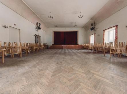 Představuji vám rozlehlou nemovitost se zajímavým potenciálem využití. Budova se nachází v centru obce a většinu její plochy tvoří velký sál s jevištěm - bývalý obecní "kulturák". Na něj navazuje hospoda o rozloze 132 m2, která je stále v provozu a nad ní najdete byt s plochou 107 m2 s balkonem 14 m2, který je nyní pronajímán (na fotkách není, uvidíte ho při prohlídce). Součástí je i pozemek před domem, který poslouží jako parkoviště a menší pozemek za domem. Oba s celkovou rozlohou cca110 m2. Pod jevištěm se nachází sklepy a kotelna. Hospoda a byt jsou vytápěny plynovými kotli a sál kotlem na tuhá paliva. Stavba je v celkově dobré kondici a jeví se vhodnou na případnou přestavbu na bytový dům. Kousek od obce je nájezd na dálnici, takže do Hradce, Pardubic, či Prahy dojedete snadno a rychle. Ať již je váš záměr jakýkoliv, rád si ho poslechu. Takže vemte kámoše a přijeďte do Klamoše.