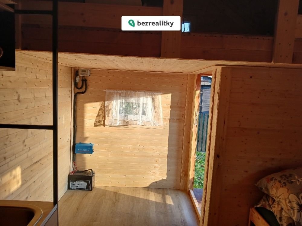 Představuji k prodeji svou novostavbu – útulnou dřevostavbu ve formě zahradní chatky v zahrádkářské kolonii na okraji města Mnichovo Hradiště. Tato dřevostavba s celkovou užitnou plochou 12m2 i s patrem na spaní je ideální pro ty, kteří hledají útočiště v přírodě mimo ruch města. Chatka je nově vybavená kuchyňkou ÄSPINGE z Ikei a postelemi UTÅKER taktéž z Ikei. Chatka je vybavena solárním, ostrovním systémem 12V 250VA 240Wp 100Ah, který je možno doplnit ještě dalším solárním panelem a baterii. K chatce se využívá mírně svažitý pozemek cca 200m2 a pozemek ve svahu o ploše 100m2. Na pozemku je nově postavené suché WC určené na chemický záchod a venkovní sprcha. Pozemek je ve vlastnictví města a zahrádkářská kolonie je oplocena. Roční poplatek, který se platí zahrádkářskému svazu je 2000,-Kč za rok. Lokalita na okraji města zajišťuje nejen klid, ale i dobrou dostupnost autem, díky přilehlé silnici. Místo poskytuje dostatek prostoru pro relaxaci nebo aktivní odpočinek a zahradničení. RK prosím nekontaktovat. Tato nemovitost je určena výhradně přímým zájemcům o koupi. Na inzerát můžete také reagovat přímo na webu Bezrealitky: https://www.bezrealitky.cz/nemovitosti-byty-domy/975575-nabidka-prodej-chaty-chalupy-26815-klaster-hradiste-nad-jizerou