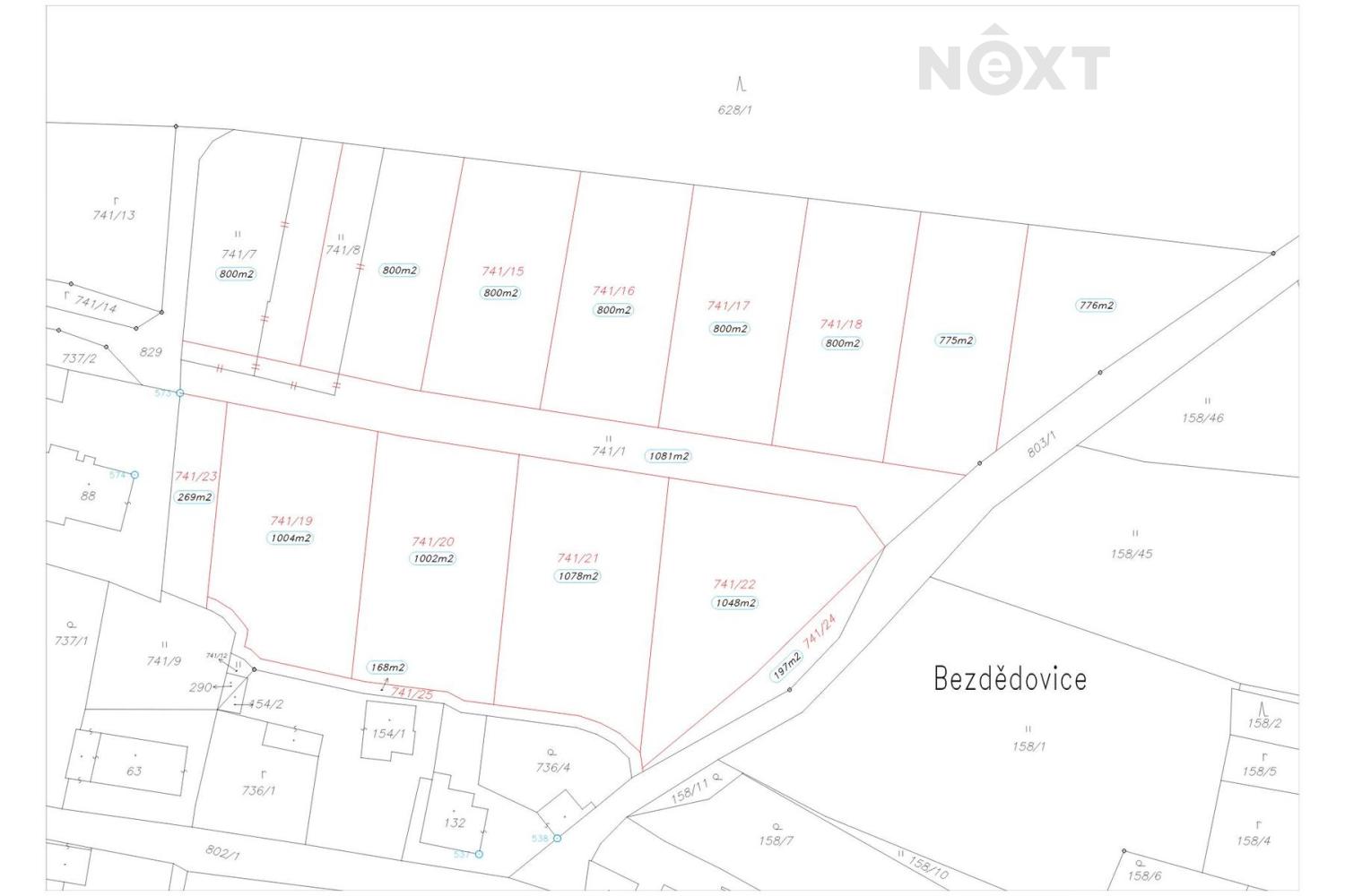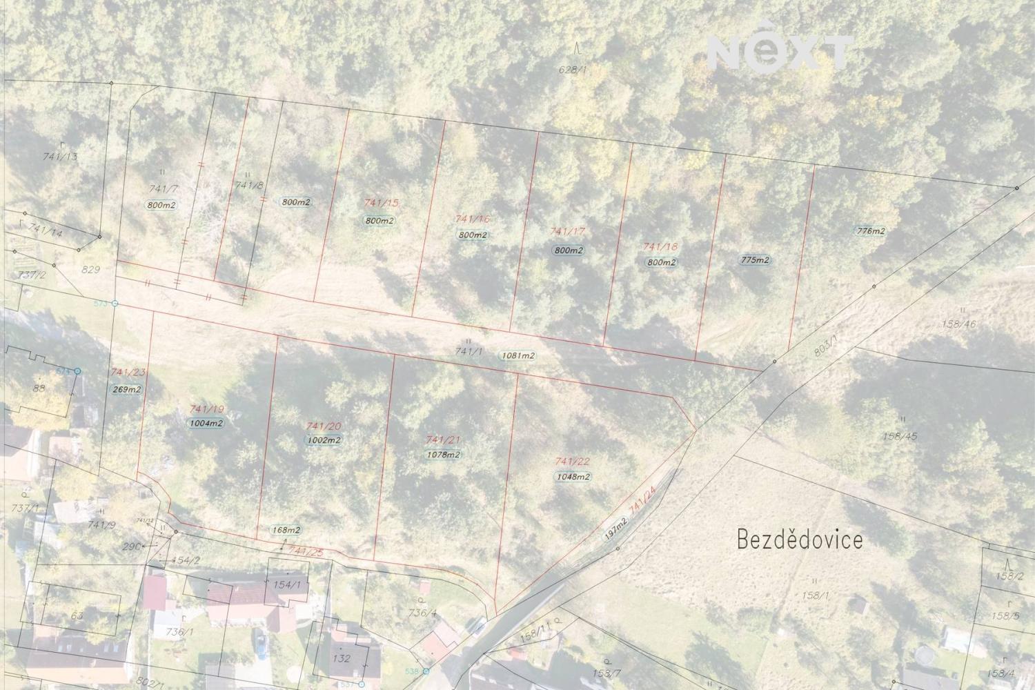 Nabízíme Vám ke koupi stavební pozemek o celkové výměře 800 m², který se nachází v obci Bezdědovice nedaleko Blatné, přímo vedle stávající zástavby rodinných domů (pozemky 741/15, 741/16, 741/17, 741/18). Díky své poloze nabízí pozemek příjemné a klidné prostředí s těsnou blízkostí lesa a pohodlným přístupem na komunikaci. Pozemek je územním plánem určen pro výstavbu rodinného domu (plocha smíšená obytná – SO). Hlavní využití je bydlení v rodinných domech, přípustné využití pak zahrnuje nízkopodlažní budovy, bytové domy a stavby pro rodinnou rekreaci. Parcela disponuje maximální zastavitelností 40 % plochy a umožňuje výstavbu do výšky 2 nadzemních podlaží včetně podkroví. Podmínkou výstavby je odstup minimálně 3,5 m od hranice lesa i od sousedních staveb (tato vzdálenost platí i pro oplocení). Na objektech jsou povoleny sedlové nebo valbové střechy se sklonem minimálně 30. V současnosti je již podána přihláška na připojení k elektrické síti. Obec nemá plánovanou výstavbu kanalizace, proto je nutné odpadní vody řešit vlastní domovní ČOV. Ke každému pozemku bude přivedena vodovodní přípojka (šachta) na náklady prodávajícího. Ideální příležitost pro klidné bydlení v blízkosti přírody a s výbornou dostupností do nedaleké Blatné. Pro bližší informace nebo prohlídku nás neváhejte kontaktovat. Pro komunikaci uvádějte evidenční číslo zakázky N107597.