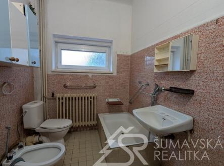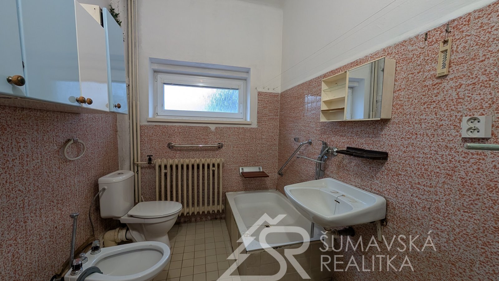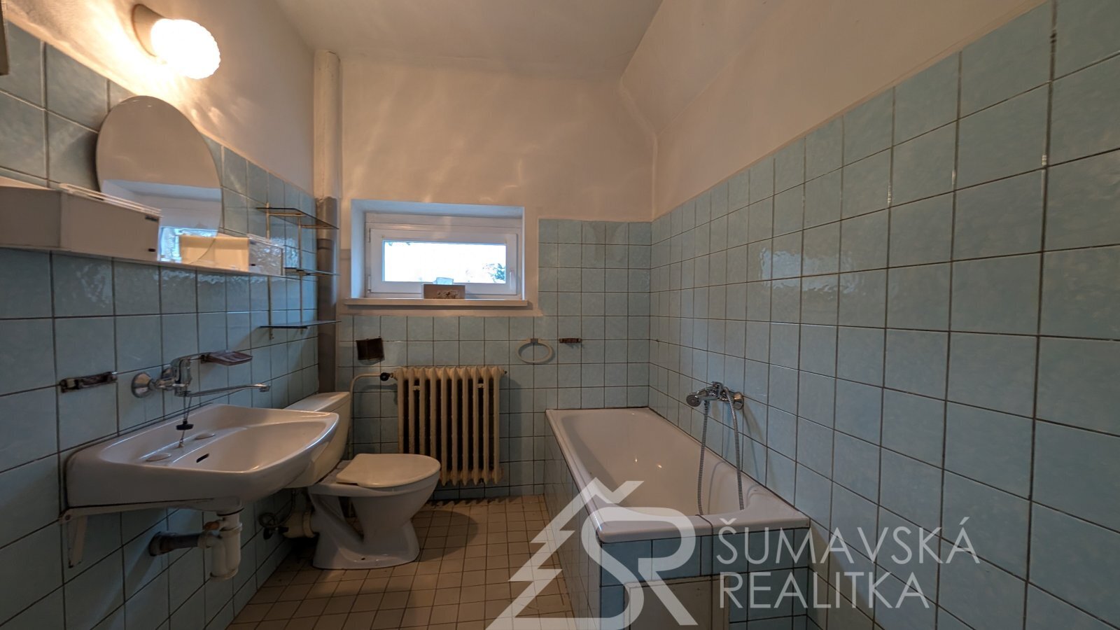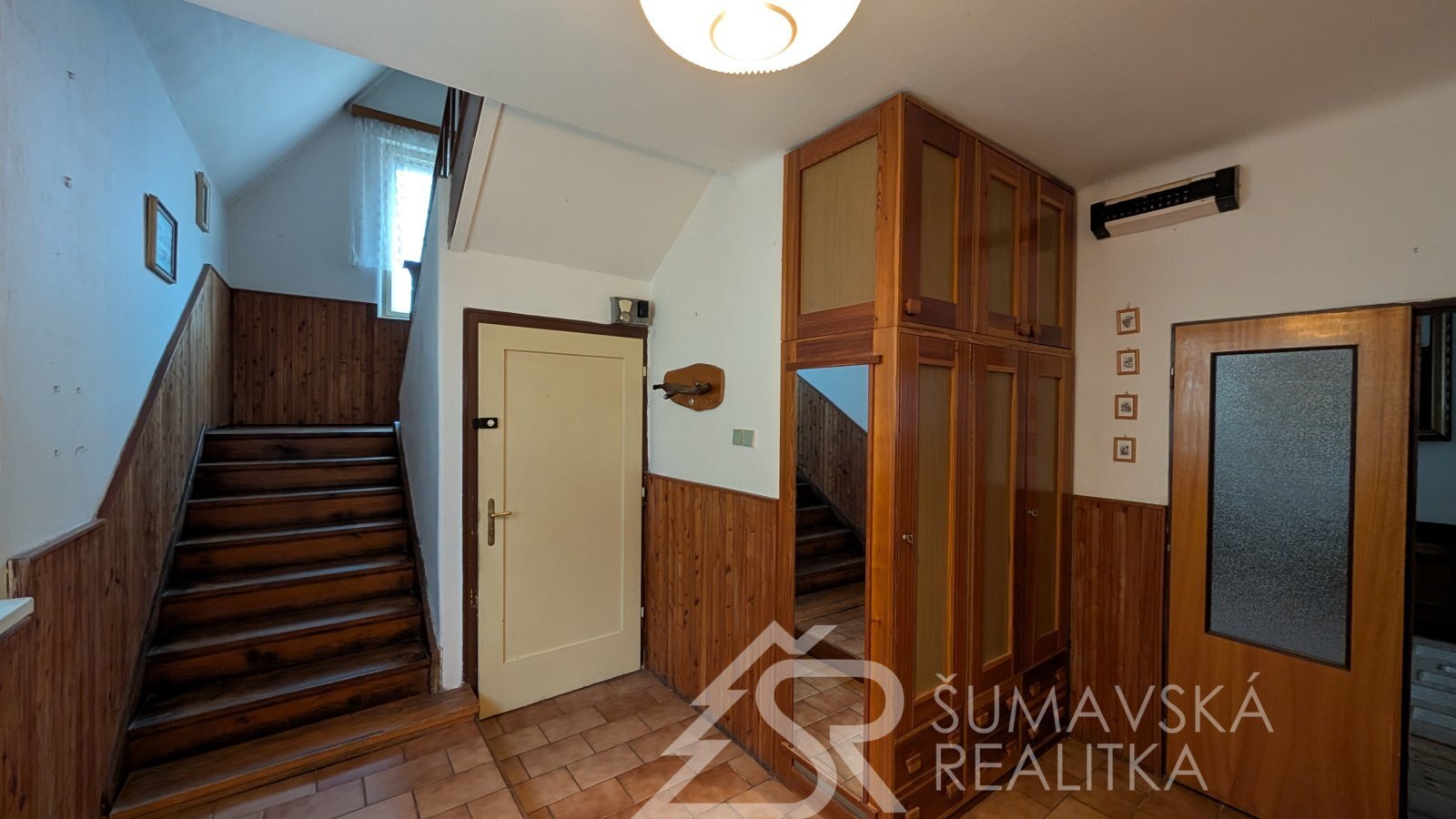 Hledáte nemovitost v Klatovech s potenciálem dvougeneračního bydlení s užitnou plochou 165,5 m2 nebo investičního využití? Tento dům s jižně orientovanou zahradou, garáží a možností samostatné jednotky v patře je ideální příležitostí. Stabilní cihlová stavba, průběžné rekonstrukce a výborná poloha na Domažlické ulici jsou silné argumenty pro koupěschopného zájemce. Pozemky: celková výměra 467 m², z toho: stavební parcela 148 m², garáž 20 m², zahrada 299 m². Lokalita: Rodinný dům se nachází v Klatovech na Domažlické ulici, v lokalitě s dobrou dopravní dostupností a kompletní občanskou vybaveností v blízkém okolí. Objekt leží u silnice naproti letnímu stadionu, což zajišťuje snadný přístup, nicméně zahrada je orientována na opačnou, jižní stranu, takže poskytuje klid, soukromí a celodenní slunce. Lokalita je vhodná pro rodiny i pro ty, kteří hledají příjemné bydlení s dobrou dostupností do centra města (nemocnice, školy základní i střední, sportovní areály, koupaliště, kulturní zázemí). Popis: Dům byl postaven v roce 1937 a v následně (1987) prošel kompletní rekonstrukcí – nové rozvody topení, vody a elektřiny, modernizace koupelen. V 1. patře jsou osazena plastová okna (2015). Střecha je krytá eternitem. Podlahy jsou převážně dřevěné, dům je celý cihlový, sklep byl odkopán a opatřen nopovou fólií proti vlhkosti. Nemovitost byla průběžně udržovaná a je ve velmi dobrém stavu. Vnitřní dispozice: 1. PP (suterén), dva sklípky o celkové ploše (7,7 m2), úložný prostor na zahradní nářadí, místnost 15,9 m2 (je zde kotel, ale je možné ho stavebně oddělit), WC s umyvadlem (1,2 m2), letní místnost (18 m2), chodba (7,6 m2), východ do zahrady, v mezipatře balkon orientovaný na jih. 1. NP (přízemí) vstupní hala, obývací pokoj (24,6 m2) je propojen s jídelnou (9,6 m2), kuchyně (7,3 m2), koupelna s WC 4,9 m2, chodba 12 m2 2. NP ložnice 16 m2, pokoj se střešním oknem 16 m2, koupelna s WC (5,2 m2), předsíň (12 m2), úložný prostor (3 m2) Na zahradě se nachází skleník a samostatně stojící garáž ( 20m2). Přístup do zahrady je možný z vedlejší cesty, chráněný pojezdovou bránou, která slouží pro tři rodinné domy. Následuje další, vlastní brána vedoucí přímo na pozemek domu. Inženýrské sítě: Elektřina 230/400 V. Vytápění – nový plynový kondenzační kotel Protherm (2022) se samostatným boilerem. Voda-veřejná kanalizace. Odpad-veřejná kanalizace.