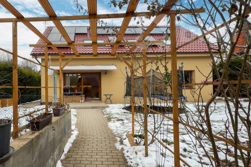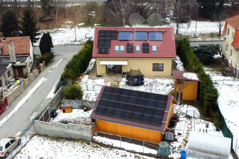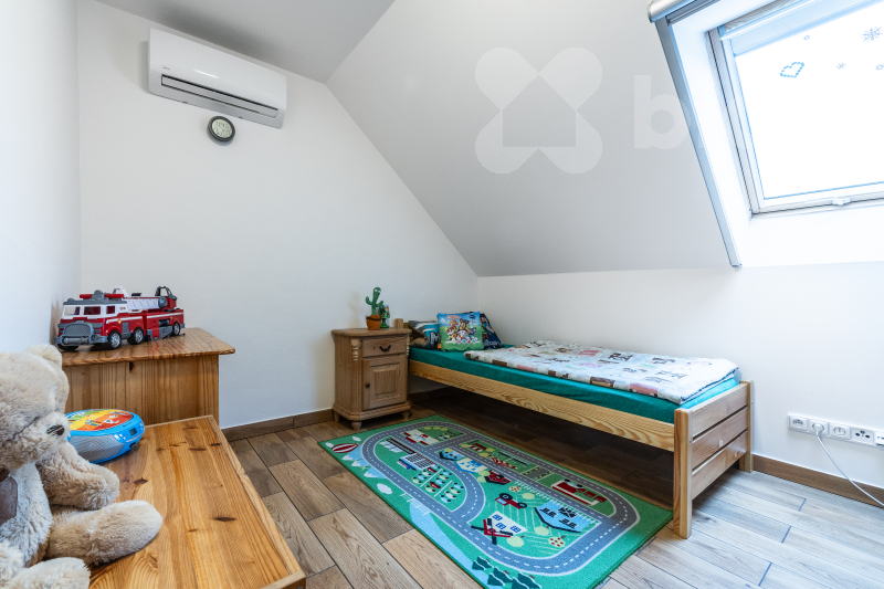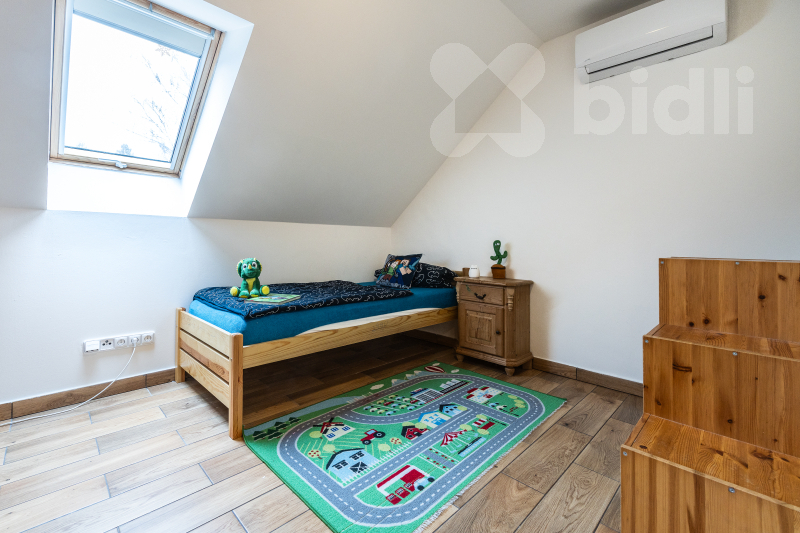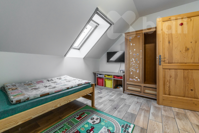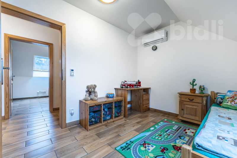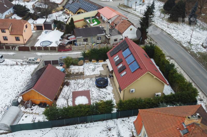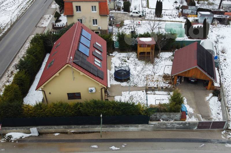 Nadstandardní rodinný dům o dispozici 6+kk, který se nachází v klidné a žádané lokalitě města Klecany. Tento dům s užitnou plochou 166 m² byl navržen tak, aby splňoval nároky na moderní, úsporné a bezpečné rodinné bydlení. Celý objekt je situován na pozemku o rozloze 773 m², který díky vyvýšenému terénu a vzrostlému živému plotu z třímetrových cypřišů poskytuje majitelům naprosté soukromí a klid od okolního světa. Srdcem celého domu je v přízemí situovaný obývací pokoj s kuchyňským koutem o velkorysé výměře téměř 40 m². Kuchyně je navíc doplněna o praktickou a prostornou spíž. Z obývacího pokoje lze plynule přejít na venkovní terasu, která propojuje interiér se zahradou. Přízemí dále nabízí pokoj o velikosti 11 m², který lze využit třeba jako pokoj pro hosty. Dále pak koupelna s vanou, sprchovým koutem a toaletou. A nakonec zde najdeme samostatnou technickou místnost s dostatkem prostoru pro pračku i sušičku. První patro je pak koncipováno jako klidová zóna se čtyřmi samostatnými pokoji a druhou koupelnou a samostatnou toaletou. Výjimečnou přidanou hodnotou této nemovitosti je prostorná dvougaráž o rozloze 50 m², která disponuje vlastní půdou. Společně s půdním prostorem nad samotným domem tak nemovitost nabízí nadstandardní množství úložných prostor. Dům je vybaven špičkovými technologiemi, které zajišťují minimální provozní náklady a maximální komfort. O vytápění se stará tepelné čerpadlo napojené na podlahové topení v celém domě, zatímco o energetickou soběstačnost se opírá fotovoltaická elektrárna o výkonu 10 kWp s bateriovým úložištěm. Příjemné klima v letních měsících zajišťuje klimatizace v každém pokoji a o bezpečí vaší rodiny se stará systém Jablotron spolu s kamerovým systémem. Město Klecany nabízí perfektní kombinaci klidného života v blízkosti přírody a výborné dostupnosti do hlavního města. V obci se nachází kompletní občanská vybavenost včetně školy, školky, lékařů a obchodů. Lokalita je vyhledávaná zejména pro svou blízkost k vltavskému břehu a cyklostezkám, přičemž cesta na metro Kobylisy trvá díky pravidelným spojům příměstské dopravy pouze 15 minut. Tento dům představuje ideální příležitost pro ty, kteří hledají hotové bydlení bez nutnosti dalších investic v jedné z nejlepších lokalit u severního okraje Prahy.