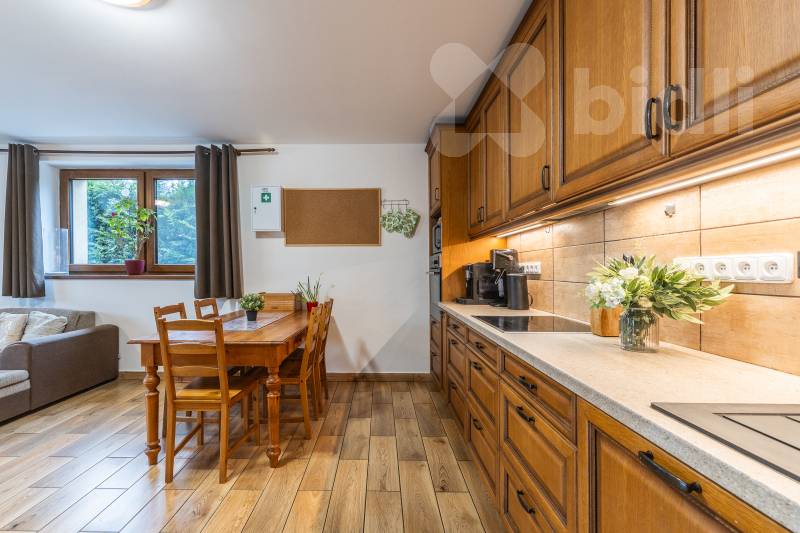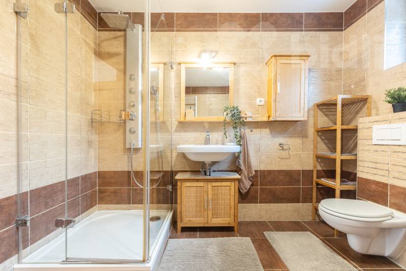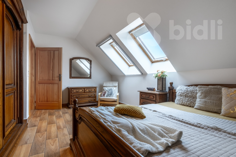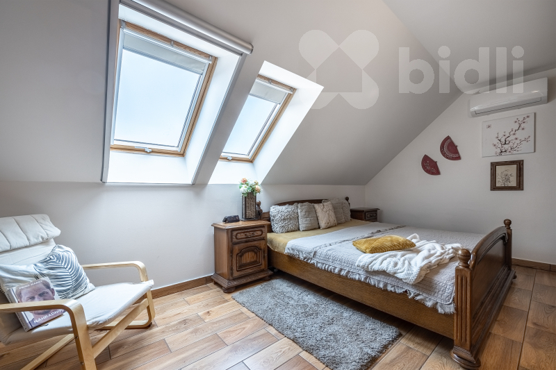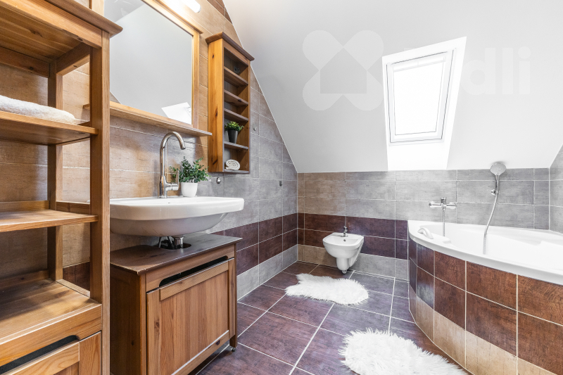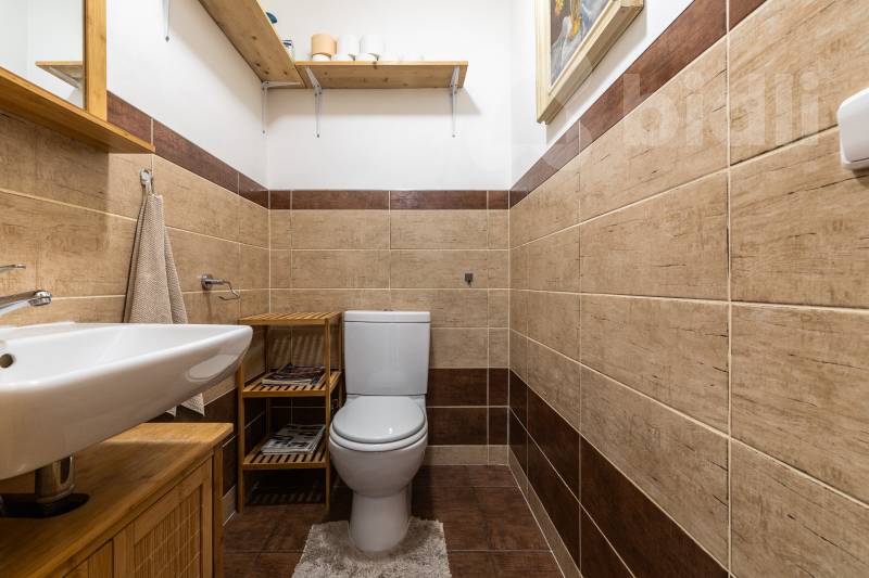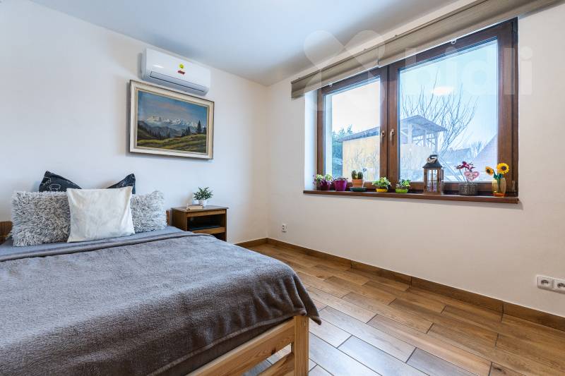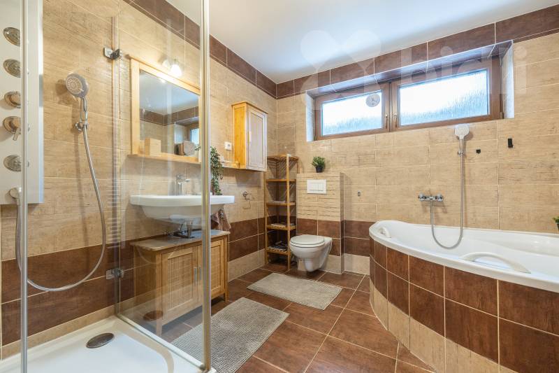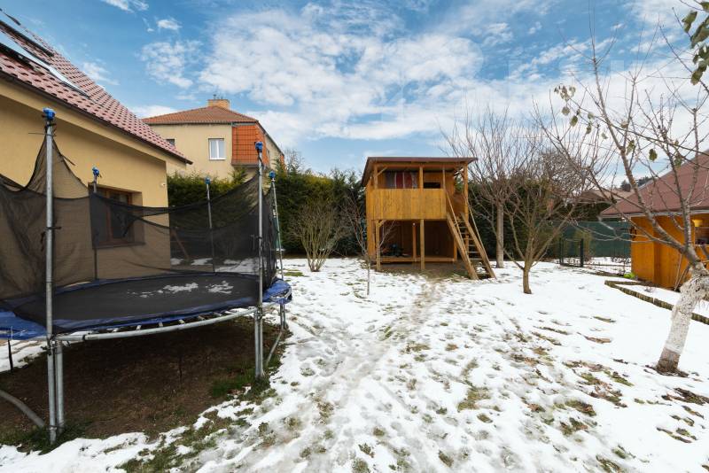 Nadstandardní rodinný dům o dispozici 6+kk, který se nachází v klidné a žádané lokalitě města Klecany. Tento dům s užitnou plochou 166 m² byl navržen tak, aby splňoval nároky na moderní, úsporné a bezpečné rodinné bydlení. Celý objekt je situován na pozemku o rozloze 773 m², který díky vyvýšenému terénu a vzrostlému živému plotu z třímetrových cypřišů poskytuje majitelům naprosté soukromí a klid od okolního světa. Srdcem celého domu je v přízemí situovaný obývací pokoj s kuchyňským koutem o velkorysé výměře téměř 40 m². Kuchyně je navíc doplněna o praktickou a prostornou spíž. Z obývacího pokoje lze plynule přejít na venkovní terasu, která propojuje interiér se zahradou. Přízemí dále nabízí pokoj o velikosti 11 m², který lze využit třeba jako pokoj pro hosty. Dále pak koupelna s vanou, sprchovým koutem a toaletou. A nakonec zde najdeme samostatnou technickou místnost s dostatkem prostoru pro pračku i sušičku. První patro je pak koncipováno jako klidová zóna se čtyřmi samostatnými pokoji a druhou koupelnou a samostatnou toaletou. Výjimečnou přidanou hodnotou této nemovitosti je prostorná dvougaráž o rozloze 50 m², která disponuje vlastní půdou. Společně s půdním prostorem nad samotným domem tak nemovitost nabízí nadstandardní množství úložných prostor. Dům je vybaven špičkovými technologiemi, které zajišťují minimální provozní náklady a maximální komfort. O vytápění se stará tepelné čerpadlo napojené na podlahové topení v celém domě, zatímco o energetickou soběstačnost se opírá fotovoltaická elektrárna o výkonu 10 kWp s bateriovým úložištěm. Příjemné klima v letních měsících zajišťuje klimatizace v každém pokoji a o bezpečí vaší rodiny se stará systém Jablotron spolu s kamerovým systémem. Město Klecany nabízí perfektní kombinaci klidného života v blízkosti přírody a výborné dostupnosti do hlavního města. V obci se nachází kompletní občanská vybavenost včetně školy, školky, lékařů a obchodů. Lokalita je vyhledávaná zejména pro svou blízkost k vltavskému břehu a cyklostezkám, přičemž cesta na metro Kobylisy trvá díky pravidelným spojům příměstské dopravy pouze 15 minut. Tento dům představuje ideální příležitost pro ty, kteří hledají hotové bydlení bez nutnosti dalších investic v jedné z nejlepších lokalit u severního okraje Prahy.