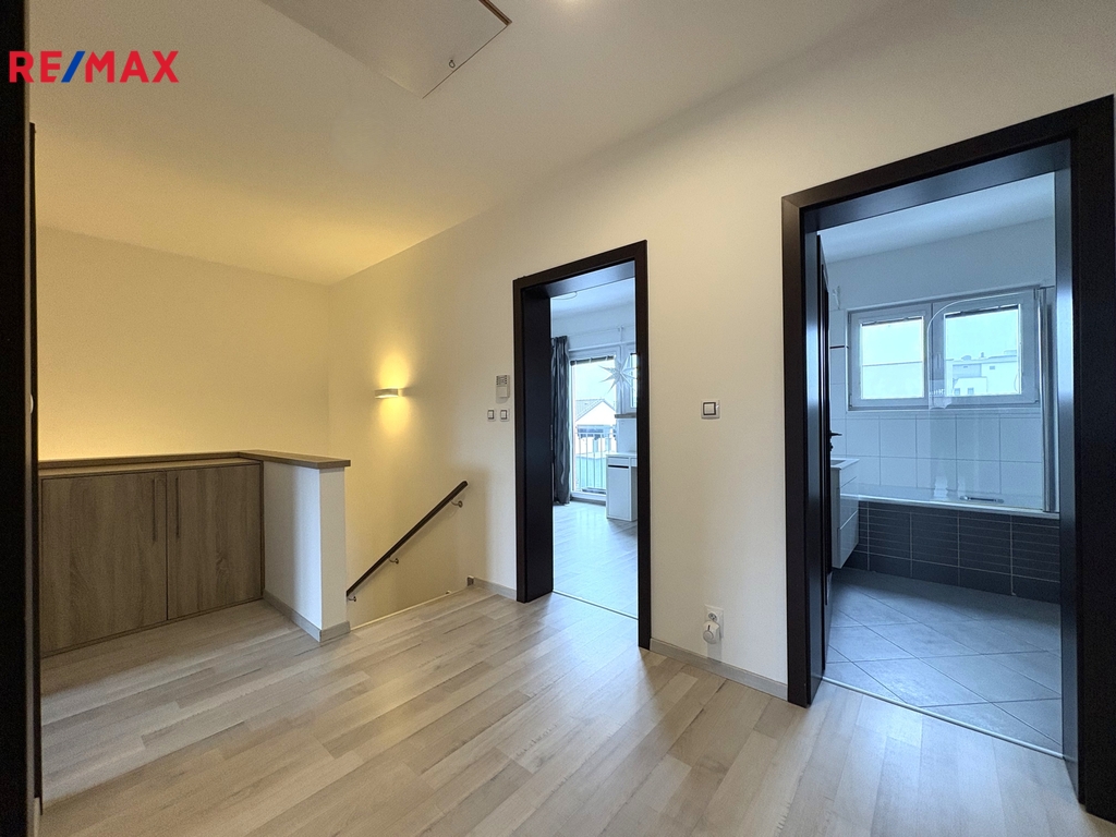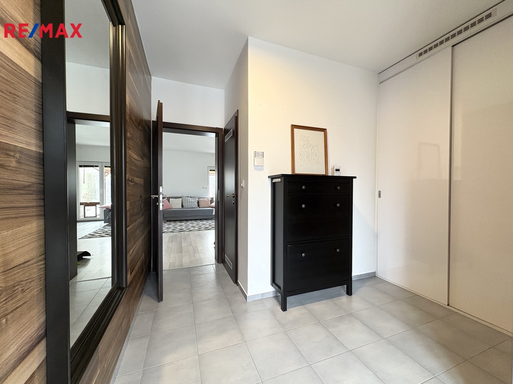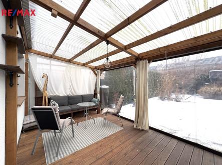Exkluzivní nabídka prodeje velice pěkného slunného krajního dvoupodlažního rodinného domu v řadové výstavbě (trojdům) s dispozicí 4+kk (užitná plocha 102 m2), se 2 koupelnami, uzavíratelnou pergolou, 2 parkovacími stáními a udržovanou zahradou (311 m2) se zahradním domkem, který je situovaný do zástavby rodinných domů v atraktivní a klidné lokalitě obce Klecany s velmi dobrou dostupností do Prahy (metro Kobylisy cca 10 min. autem nebo PID autobusem). Díky promyšlené koncepci je dům příjemně prostorný a komfortní. Dispoziční uspořádání domu: V přízemí se nachází prostorná předsíň s vestavěnou skříní, ve které je umístěný plynový kotel s boilerem, pračka a sušička, dále velký obývací pokoj s kuchyňským koutem (moderní designová kuchyňská linka s vestavěnými spotřebiči – indukční varná deska, elektrická trouba, mikrovlnná trouba, myčka nádobí, lednice s mrazákem, digestoř) a vstupem na terasu s uzavíratelnou pergolou a zahradu, toaleta s umyvadlem a komora. V 1. patře se nachází 3 samostatné pokoje, centrální chodba s vestavěnou skříní a velká koupelna s vanou, umyvadlem a toaletou. Podkroví tvoří prostorná otevřená galerie a jeden samostatný pokoj. Velké podkroví (půda) o velikosti 66 m2 je možné upravit na další obytný prostor. Podlahy jsou tvořeny kombinací plovoucí podlahy (pokoje, chodba v 1. patře), příjemné moderní dlažby (koupelny, kuchyně) a koberce (schodiště). Vytápění domu zajišťuje vlastní plynový kotle (s podlahovým vytápěním Protherm) a je doplněno krbovými kamny v obývacím pokoji. Ohřev hody zajišťuje velký boiler. Dům je zabezpečen alarmem. Voda i kanalizace jsou napojeny na obecní řád. V místě je kompletní občanská vybavenost (škola, školka, obchody, lékař, restaurace, ….). Součástí ceny je nabídka bezplatného zprostředkování financování a právní servis. Pro bližší informace či prohlídku kontaktujte makléře nabídky.