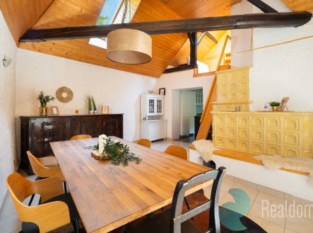 Tento dům/chalupa s dispozicí 5+1 a užitnou plochou přes 180 m² se nachází v klidné lokalitě na okraji obce Klenovice u Soběslavi. K domu náleží prostorná "hospodářská" budova s garáží, skladem, saunou, prádelnou a krytou terasou, a krytý pozemek o velikosti 938 m², který poskytuje dostatek soukromí pro odpočinek i zábavu. K dispozici je i krytý bazén. Dům je v přední části roubený, v ostatních částech je postaven z tradičních materiálů 1. pol. 20. století. Celkové pojetí je tak blízké tradičním domům stavěným v Čechách v dřívějších dobách a je v místě unikátní. Okna a vstupní dveře jsou plastová. Interiér domu je kombinací tradičních prvků jako např. nádherných kachlových kamen v obývací části nebo tradičních kamen v kuchyni a moderních prvků -rekonstruovaná koupelna, obložení dřevem. Nemovitost je určena k celoročnímu bydlení - je vedena jako rodinný dům. Dispozice domu je bohatě dimenzovaná i pro větší rodinu. Kromě velkého prostoru obýváku s jídelnou se zde nachází i prostorná kuchyně, 2 dětské pokoje, ložnice, herna a pokoj sloužící jako čítárna/odpočívárna. Umístění domu je v oddělené části obce Klenovice "U Hasíka". Nachází se v bezprostředním sousedství lesa a 200 m na vrchu nad řekou Lužnicí, což dává místu jedinečnou romantickou duši. Veškerá občanská vybavenost se nachází v přilehlé Soběslavi. Velice dobrá dopravní dostupnost do Českých Budějovic nebo Prahy po dálnici D3. Přijďte se přesvědčit osobně Uvedené výměry jsou orientační. V případě více zájemců bude nemovitost prodána nejlepší nabídce a majitel si vyhrazuje právo vybrat kupujícího na základě jim zvolených kritérií. Veškeré zveřejněné údaje v tomto inzerátu mají pouze informativní charakter.