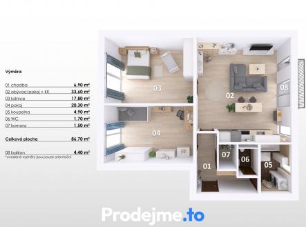 Dopřejte si moderní byt s výhledem do zeleně, garážovým stáním a jen 14 minut od metra Kobylisy! + 3+kk + užitná plocha 87 m2 + 14 min od metra Kobylisy + garážové stání + sklep 4,4 m2 + kolaudace 2020 + klidná lokalita s výhledem do přírody + ihned k nastěhování + podlahové vytápění + okenní žaluzie Klid, prostor a snadné spojení s Prahou Prostor, pohodlí i blízkost Prahy — to všechno tady máte na jednom místě. Klíčany leží kousek za Prahou a blízká dálnice D8 usnadňuje každodenní dojíždění i delší cesty. Byt je součástí projektu Klíčanka, kolaudovaného v roce 2020. Praktická dispozice 3+kk s balkónem Byt se nachází ve třetím podlaží domu bez výtahu a má dispozici 3+kk o užitné ploše téměř 87 m2 + balkón 3,6 m2 + sklep 4,4 m2. Působí vzdušně a prostorně – velká okna v každé místnosti přivádějí spoustu denního světla a podporují příjemnou domácí atmosféru. Prosvětlený interiér a výhled do přírody Obývací pokoj je propojený s kuchyní na míru, kde nechybí praktický ostrůvek – skvělé místo pro rychlé snídaně, večerní posezení nebo společné vaření. Odsud také vstoupíte na balkón. Ložnice i dětský pokoj orientované do zeleně vytvářejí pocit klidu i příjemného soukromí. Koupelna je vybavená vanou, umyvadlem a zrcadlem a počítá i s místem na pračku se sušičkou. Samostatná toaleta má vlastní malé umyvadlo. Praktickou součástí bytu je také komora s posuvnými dveřmi – ideální na zásoby a domácí potřeby, které chcete mít po ruce, ale ne na očích. Sklep a parkování v garáži Úložné prostory doplňuje vlastní zděný sklep o velikosti 4,4 m2, ideální pro sportovní vybavení, sezónní věci nebo cokoliv, co se vám nevejde do bytu. Jen pár kroků od sklepa leží i vaše parkovací stání v garáži, takže ranní odjezdy budou vždy pohodlné — bez škrábání zamrzlých oken a bez nepříjemných teplot v autě. Vybavení Na fotografiích je byt zachycen ve vybaveném stavu, samotný prodej však zahrnuje jen část vybavení. Zůstává kompletní kuchyňská linka s vestavnými spotřebiči (myčka, indukční deska, mikrovlnná trouba, elektrická trouba a digestoř), barové stoličky u kuchyňského ostrůvku, šatní skříň v ložnici, zrcadlo v koupelně a plisé žaluzie na oknech v obývacím pokoji a garnýže v ložnici a pokoji. Klíčany, obec kousek od Prahy Klíčany jsou obec v okrese Praha-východ, odkud jste za 14 minut u metra Kobylisy. Díky poloze u D8 máte rychlé spojení do Prahy i na hlavní dopravní tahy, ale zároveň si tu užijete venkovský klid, dostatek zeleně a příjemné prostředí k bydlení. Hned u domu vede cyklostezka, takže vyrazit na kolo nebo na procházku přírodou můžete doslova za minutu. V obci najdete dvě prodejny potravin, restauraci, mateřskou školu i čerpací stanici. Do Prahy vás dovezou pravidelné přímé autobusové linky s dojezdem zhruba 15 minut na metro Kobylisy. Zaujal vás tento prosvětlený byt v klidné lokalitě kousek za Prahou? Ráda vás přivítám na společné prohlídce. S financováním vám pomohou naši specialisté na hypoteční úvěry.