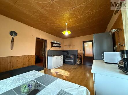 Nabízíme Vám k prodeji chalupu se zahradou, která stojí v obci Klíny. Chalupa je napojena na vodovodní řad, žumpu 2 m3, elektřina 230V/400V. Na střeše je eternit, okna jsou plastová, vytápění chalupy zajišťují v pokojích krbová kamna - v obývacím pokoji mají kamna výkon 9 kW a v patře je výkonnost kamen 5 kW, v kuchyni jsou kuchyňská kamna s výkonem 12 kW (komín je ze šamotových cihel) Elektřina je v mědi, dřevěné podlahy. Pozemek je rovinatý, oplocený, možnost parkovat na pozemku. Na pozemku se nachází kolna na dřevo. Jedná se o smíšenou stavbu. Chalupa je dispozičně řešena takto: V přízemí je zádveří, chodba, kuchyň, ze které je vstup do obývacího pokoje s krbovými kamny, koupelna s toaletou (keramický obklad a dlažba). V podkroví jsou 2 pokoje, kdy jeden z nich je velmi prostorný a druhý je menší velikosti. Z větší části je všude položena plovoucí podlaha. Zastavěná plocha domu činí 105 m2, zahrada je o výměře 893 m2. Chalupa se prodává s vybavením. Spoj z Litvínova zajišťuje autobusová doprava. Klíny jsou známé svým sportovním areálem, kde je k dispozici sjezdovka se čtyřsedačkovou lanovkou, letní zipline a bobová dráha, minigolf, lanový park, multifunkční hřiště, sportovní hala s lezeckou stěnou, půjčovna kol a koloběžek, traily, bikepark, restaurace s hotelem, hospoda. Obec pořádá společenské akce, jak pro dospělé, tak pro děti - dětský den, stavění a kácení májky, plesy, sportovní turnaje, rozsvícení vánočního stromku, letní zábavu, letní kino. Rádi Vám pomůžeme s optimálním financováním nemovitosti. Podrobnější informace u makléře.