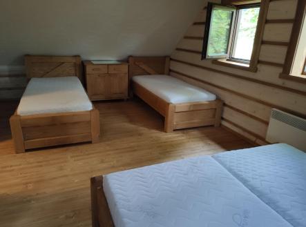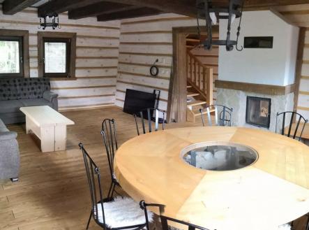 Nabízíme na prodej dřevostavbu v obci Klokočov na Slovensku. Dřevěnice leží v malebné horské dědině pod vrcholem Vrchpredmier (828 m n. m.) v oblasti Kysuc, asi 7 km od českých hranic na druhé straně Beskyd. Lokalita je ideální pro rodinné dovolené i krátké pobyty v přírodě. V blízkosti se nachází Ski areál Bílá s letním dětským parkem, množstvím hřišť, bike trailů a půjčovnou kol. V okolí najdete také arcibiskupský lovecký zámeček a poutní místo Turzovka. Roubenka sousedí s chatou Gazdovský dvor a areálem Sudopark s vyhřívanými káděmi, čertovou lázní, chladícím jezírkem, infrasaunou, restaurací a dětským hřištěm. Jedná se o masivní dvoupatrový srub s terasou ve tvaru L, průhledovým krbem a masivním jídelním stolem na kamenném podstavci. V přízemí je obývací pokoj, kuchyně s výstupem na terasu a WC, v patře dvě ložnice s vlastní koupelnou a WC. Pod terasou je uzamykatelný prostor na dřevo a na pozemku ohniště s kamennou základnou. Více informací u makléře.