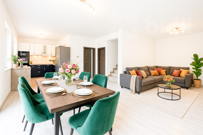 Je vaším snem moderní bydlení s rodinou v domě se zahradou v dobré dostupnosti Prahy i dalších měst? Pak navštivte samostatný rodinný dům z roku 2020 situovaný uprostřed rozkvetlé zahrady, navíc energeticky velmi úsporný. Dům s dispozicí 4+kk nabízí užitnou plochu 135 m2 plus mnoho vedlejších prostor, takže je tu dostatek místa pro každou rodinu a všechny její potřeby. Pozemek o velikosti 592 m2 je ideálně veliký a moc hezky a účelně upravený. Obec Lstiboř kvete společenským životem a má skvělé spojení na železnici v Českém Brodě. Velkou předností domu je velmi úsporný provoz a energetický štítek B. Vytápění je příjemné podlahové, řešené pomocí tepelného čerpadla. Cirkulaci vzduchu navíc podporuje rekuperace. Dům je okamžitě připravený k nastěhování, vybavený je kuchyňskou linkou a zařízenými koupelnami v nadčasovém designu. Okna kryjí elektronicky ovládané venkovní žaluzie. Společenské místnosti jsou situovány v přízemí domu, velkorysý prostor tu vzájemně propojuje kuchyni, jídelnu a obývací pokoj, francouzské okno navíc prostory otvírá k venkovní terase. V inzerci jsou použity vizualizace pro lepší představu o možnosti zařízení pokojů. U vstupu do domu je šatní skříň a koupelna s toaletou a sprchovým koutem a dále technická místnost. V patře jsou pak tři neprůchozí ložnice, koupelna s vanou, samostatné WC a komora. Po výsuvném schodišti je navíc přístupné podkroví domu, které lze rovněž využít. K domu přiléhá kryté parkovací stání pro 2 vozidla a dva zahradní domky. K relaxaci a odpočinku slouží terasa o rozloze 40 m2, která nabízí krásný výhled do zahrady s automatickou závlahou využívající retenční nádrž na dešťovou vodu. Lstiboř je klidná a bezpečná historická obec žijící společenským životem, která je součástí sousední obce Klučov, kde je obecní úřad, školka, supermarket a také například vyhlášené vinařství. Pouhé 2 kilometry je nádraží v Českém Brodě. Město Český Brod nabízí kompletní občanskou vybavenost a vynikající vlakové spojení s Prahou. Ze Lstiboře jezdí 3 autobusové linky, ráno a odpoledne jsou 2 spoje za hodinu, večer jeden a PID call. Autobusy jedou nejen do Českého Brodu, ale například až do Babic a Říčan. Nedaleký je i nájezd na D11.
