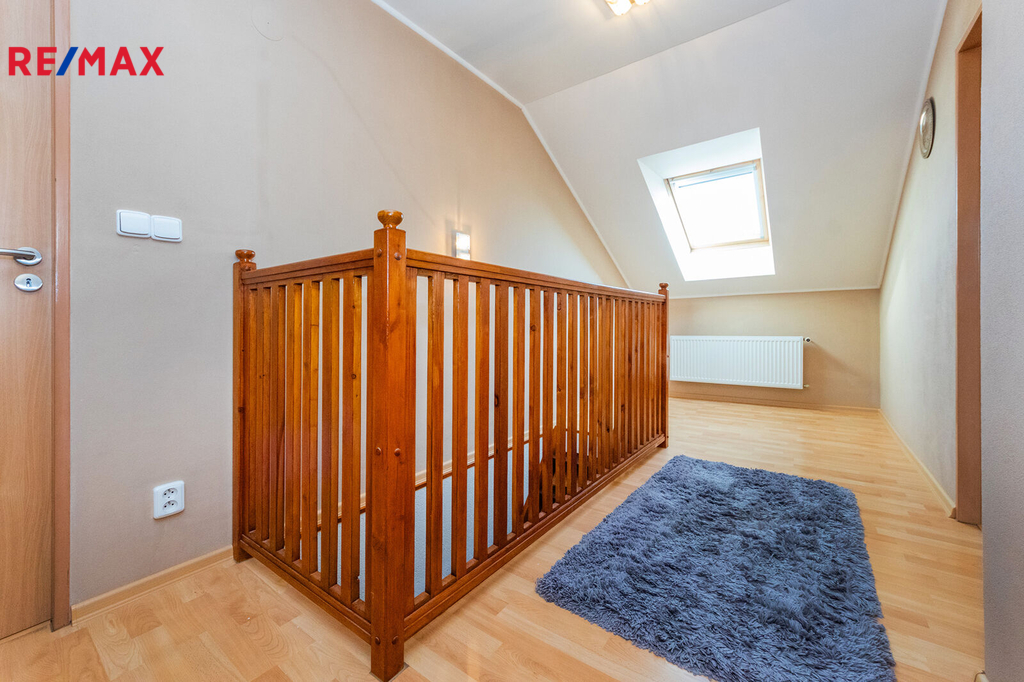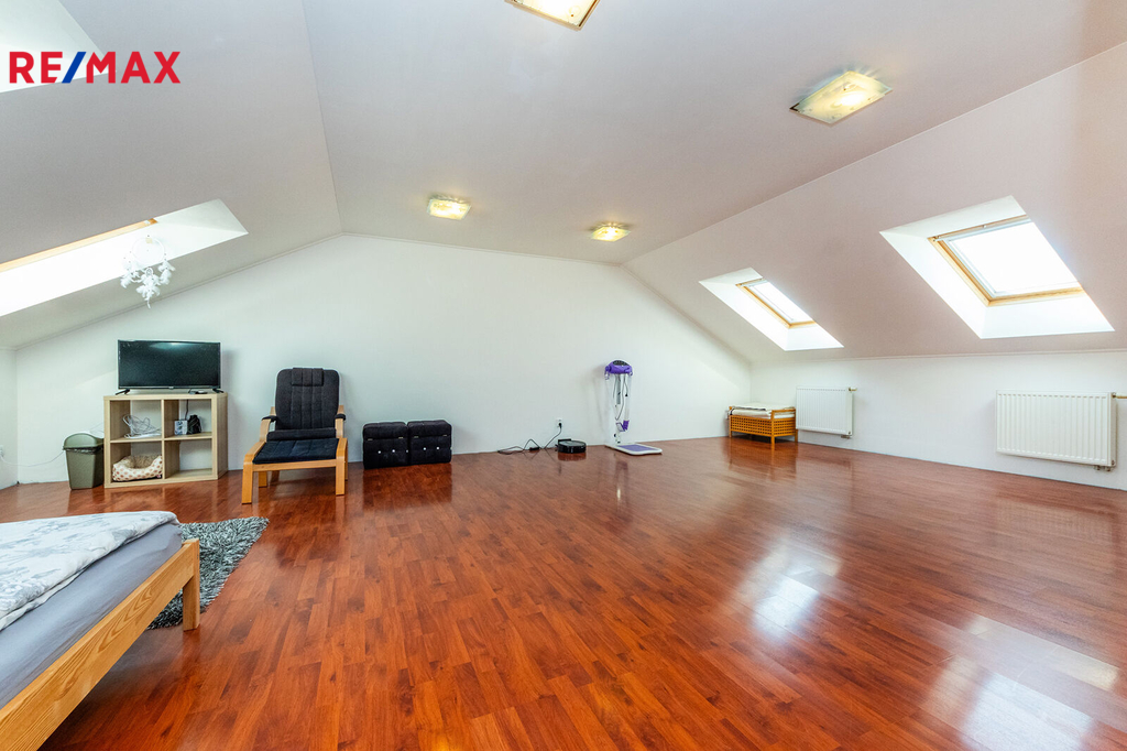 Dovoluji si Vám exkluzivně nabídnout rodinný dům po většinové rekonstrukci v obci Kněževes v okrese Praha - západ, který Vám garantuje pohodové rodinné bydlení s možností zázemí pro podnikání (autodílna, krátkodobé ubytování apod.). V celém domě byla osazena okna s izolačním trojsklem, která v kombinaci se zateplením a tepelným čerpadlem vykazuje energetickou náročnost stavby se zařazením do klasifikační úsporné třídy C. Dům disponuje třemi podlažími a je částečně podsklepen. 1. NP nabízí vstupní chodbu, kuchyň, obývací pokoj, ložnici, koupelnu se sprchovým koutem a toaletou, spíž a vstup do sklepa. Ve 2. NP je k dispozici obývací pokoj s krbovou vložkou, kuchyň s jídelnou, ložnice s vestavěnou skříní, koupelna s vanou a toaletou. Podkroví Vám nabídne prostorný obývací pokoj s přípravou na instalaci kuchyňské linky, ložnici s vestavěnou skříní a výstupem na lodžii, koupelnu se sprchovým koutem a toaletou. Celý prostor podkroví je mj. osazen střešními okny Velux, která Vám zajistí maximální světlost prostoru. Součástí domu je nadstandardní garáž pro čtyři auta o celkové ploše 106 m2, dále welness zóna s posilovnou a saunou, tři samostatné místnosti s přípravou využití např. na krátkodobý pronájem. Tato část je vytápěna samostatným elektro kotlem. Další parkovací možnosti jsou na dvoře domu, který je vydlážděn zámkovou dlažbou. Přidanou hodnotou domu je pečlivě udržovaná zahrada, která byla navržena zahradním architektem, a spolu s možností venkovního posezení v altánu, máte možnost další relaxace pohodového bydlení. Pro zálivku můžete využívat retenční nádrž o objemu 30 m3 dešťové vody, kterou pohodlně dopravíte na potřebné místa zahrady za pomocí tlakového čerpadla. Dům je napojen na kompletní inženýrské sítě, tj. elektřina, obecní vodovod, kanalizace a plyn. Obec nabízí základní občanskou vybavenost, mateřská školka, dvě restaurace, obchod s potravinami, kulturní dům, nebo fanoušci dopravních letadel ocení Val s vyhlídkou u hlavní vzletové a přistávací dráhy na letišti Václava Havla. Rozhodně oceníte výborné napojení na dálnici D6 a D7, dostupnost letiště Václava Havla a rovněž Prahy 6 (metro trasa A Nádraží Veleslavín cca 12 min a Vítězné nám. 20 min). Další volnočasové možnosti jsou v nedalekém POP Praha, s nabídkou oblečení mnoha světových značek, a pro děti zábavný park Majaland, kde můžete strávit den s nezapomenutelnými zážitky. Možnost financováni koupě za pomocí hypotéčního úvěru, s jehož zajištěním Vám velmi rádi pomohou naši finanční specialisté. V případě, že Vás tato nabídka zaujala, neváhejte mě kontaktovat, a velmi rád si s Vámi dohodnu vhodný termín osobní prohlídky. Děkuji a těším se na setkání s Vámi. :-)