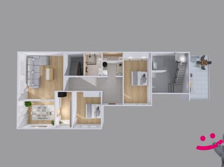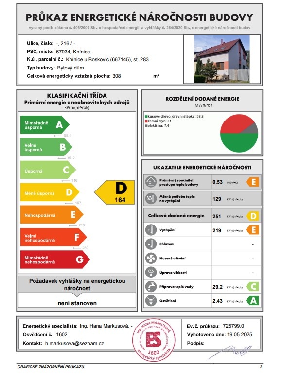 Nabízíme prostorný dům se 2 BJ a zahradou, k investici nebo bydlení, stojící v klidné části obce Knínice. V podstatě jde o 2v1, plocha domu je 23 x 7-9 m, spodní byt je technicky hotový, chce jen kosmetické úpravy. Dům je vhodný pro dvě generace nebo na bydlení s podnikáním, v jednom bytě bydlíte, druhý pronajímáte. 2 samostatné bytové jednotky s vlastními vchody, terasou v patře, orientací domu na JV to nabízí. Na pozemku se dále nachází prostorná garáž s dílnou (38m2), sklad, bazén, zahrada se stromy, studna. Pod terasou 1. patra je další kryté venkovní posezení. Celková užitná plocha domu 337 m2, je ve velmi dobrém technickém stavu k okamžitému užívání. 1. BJ 4+1 (96 m2) - po vstupu do bytu je chodba, ze které se jde do každého pokoje zvlášť, průchozí je kuchyně s jídelnou, navazuje obývací pokoj. Tyto dva pokoje lze spojit na velkou místnost 36 m2 a využít např. k podnikání. Ložnice a další pokoj jsou samostatné. Koupelna s vanou a umyvadlem, samostatné WC s umyvadlem z 80tých let čekají na modernizaci, stejně jako případná výměna kuchyňské linky a nové podlahové krytiny. Elektřina je v mědi a byt má nové sádrokartonové podhledy. 2. BJ v patře (2012) nabízí dispozice 3+KK s možností 4+KK doděláním pouze jediné příčky v dětském pokoji (145 m2). Velká hala v přízemí, sauna, terasa v patře, obytná část vestavěná skříň (5,2 m). Prostorná chodba, samostatné místnosti - obývací pokoj se stylovými krbovými kamny s útulnou atmosférou, jídelnou a moderní kuchyní (se spižírnou), která dokonale zapadá do prostoru, celkem 38 m2, dětský pokoj (nebo 2 pokoje), ložnice, světlá, prostorná koupelna se sprchovým koutem a rohovou vanou, samostatné WC s umyvadlem, technická místnost. Kuchyň a koupelna jsou vybaveny elektrickým podlahovým vytápěním s termostatem. Skvěle zvolený design podlah, které ladí s celkovým charakterem interiéru. Celková vybavenost kvalitními prvky od renomovaných výrobců (Grohe, Schneider electric, JAP, Pramos, Gerbrich, Velux, Schiedel, nerezové zábradlí na míru) Dům je částečně podsklepený (39m2), s velkým skladem a garáží po rekonstrukci střechy a připravená k dokončení. Celá obálka budovy prošla kompletní rekonstrukcí od střechy včetně zateplení fasády, plastových oken a dveří. Podlahy - dlažba, OSB desky, prkna, PVC, plovoucí podlaha. Dům je napojený na elektřinu, plyn, vodovod, pevný internet (O2, T-Mobile), 3 komorový septik. Centrální vytápění a ohřev vody lze zajistit pro přízemní byt plynovým kotlem nebo kotlem na tuhá paliva umístěným ve sklepě. Centrální vytápění druhého bytu lze krbem s výměníkem v obývacím pokoji nebo plynovým kotlem (bojler na ohřev vody) je zde připravené i možné napojení na výkonný kotel na tuhá paliva ve sklepě. Náklady na bydlení celého domu lze s využitím více zdrojů optimalizovat na minimum. Knínice jsou Městys, v obci se nachází MŠ, ZŠ ( 10 min) hřiště a sportovní areál 2min, pošta, COOP, posilovna, autobus 500m - do Jevíčka a Boskovic (10 min) s kompletní vybaveností a úřady.