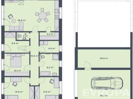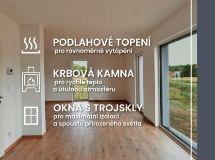POSLEDNÍ volný podsklepený přízemní dům, PENB B a tepelné čerpadlo!! Exkluzivně nabízíme dřevostavbu rodinného domu č.p. 238 v Knovízi, ulice Na Hrudném. Samostatně stojící podsklepený dům s garáží a prostornou dílnou má dispozici 4+kk s celkovou plochou 169 m2, je postaven ve vysokém standardu moderního bydlení PODLAHOVÉ TOPENÍ V CELÉM DOMĚ, TEPELNÉ ČERPADLO, IZOLAČNÍ TROJSKLA, LUXUSNÍ KOUPELNA a jako nízkoenergetický. K pozemku patří prostorná zahrada (pozemek 800 m2). Výhodou tohoto domu je dostatek nejen vnitřní užitné plochy, ale navíc je GARÁŽ A PROSTORNOU DÍLNU perfektní řešení pro uskladnění vašich kol, zahradní techniky a dalšího vybavení. Samotné přízemí domu má potom ideální dispozici z prostorné předsíně vcházíte do chodby, která propojuje všechny místnosti. Největší dominantou je prostorný obývací pokoj s kuchyňským koutem s francouzskými okny (izolační trojskla) vedoucími na terasu, součástí kuchyně je i samostatná komora. V domě dále 3 pokoje (12, 12 a 15m), prostorná koupelna (9 m2) s vanou, sprchovým koutem a WC, dále samostatné WC s umyvadlem a technická místnost. Nová rezidenční zóna má hotové veškeré areálové komunikace, chodníky, nájezdy, osvětlení. Vytápění domu je zajištěno podlahovým topením s napojením na tepelné čerpadlo vzduch/voda s funkcí chlazení v letních měsících, dále komín pro krbová kamna a příprava na fotovoltaiku. Dům je postaven ve velmi kvalitním provedení firmy VEXTA DOMY, mj. DOŽIVOTNÍ ZÁRUKA NA KONSTRUKCI VAŠEHO DOMU! Knovíz je ideální bydlení těsně za Prahou (20 km), v bezprostřední blízkosti města Slaný nedaleko dálnice D7. Díky ideální poloze obce se dostanete na okraj Prahy nebo na letiště ✈během 15 min. do Slaného, které nabízí školy, obchody, nemocnice, sport, gastro prostě vše, na co si vzpomenete, pojedete necelých 10 min. Blízké okolí pak nabízí bohaté sportovní vyžití včetně zimních sportů, turistiky, plavání či golfu (golf Beřovice je vzdálen pouhých 13 minut ). V Knovízi potom najdete mj. 2 vyhlášené hospody (jedna 50metrů od nemovitosti), potraviny, MŠ, letní kino, autobusové nádraží, obec pořádá mnoho kulturních akcí.