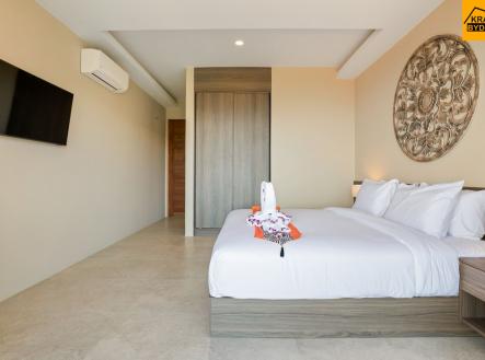 Vylepšete svůj život v luxusní oáze v okouzlujícím tropickém ráji Koh Samui. Moderní plně zařízená dvou podlažní vila s úchvatným výhledem na moře. Ve vile naleznete 2 ložnice s vlastní koupelnou, balkonem, dále obývací pokoj s kuchyňským koutem se vstupem na venkovní terasu se soukromým bazénem. Vysoce kvalitní materiály a promyšlený design zaručují luxusní a elegantní prostředí, které uspokojí i ty nejnáročnější klienty. Bazén a parkovací místo dotváří komfortní a bezstarostný životní styl, který si budete moci naplno užívat. Velkým bonusem bude výstavba mostu mezi ostrovem a pevninou. Tato vila je ideální pro ty, kteří hledají luxusní a moderní bydlení v klidné a bezpečné lokalitě. Je rovněž vhodná jako investice mimo EU, zejména pro krátkodobý pronájem, který je v této lokalitě velmi žádaný. Volná ihned!