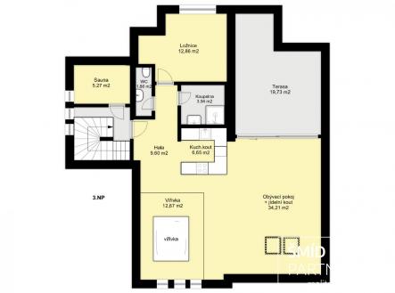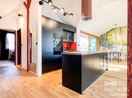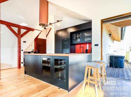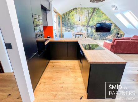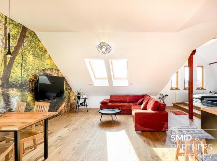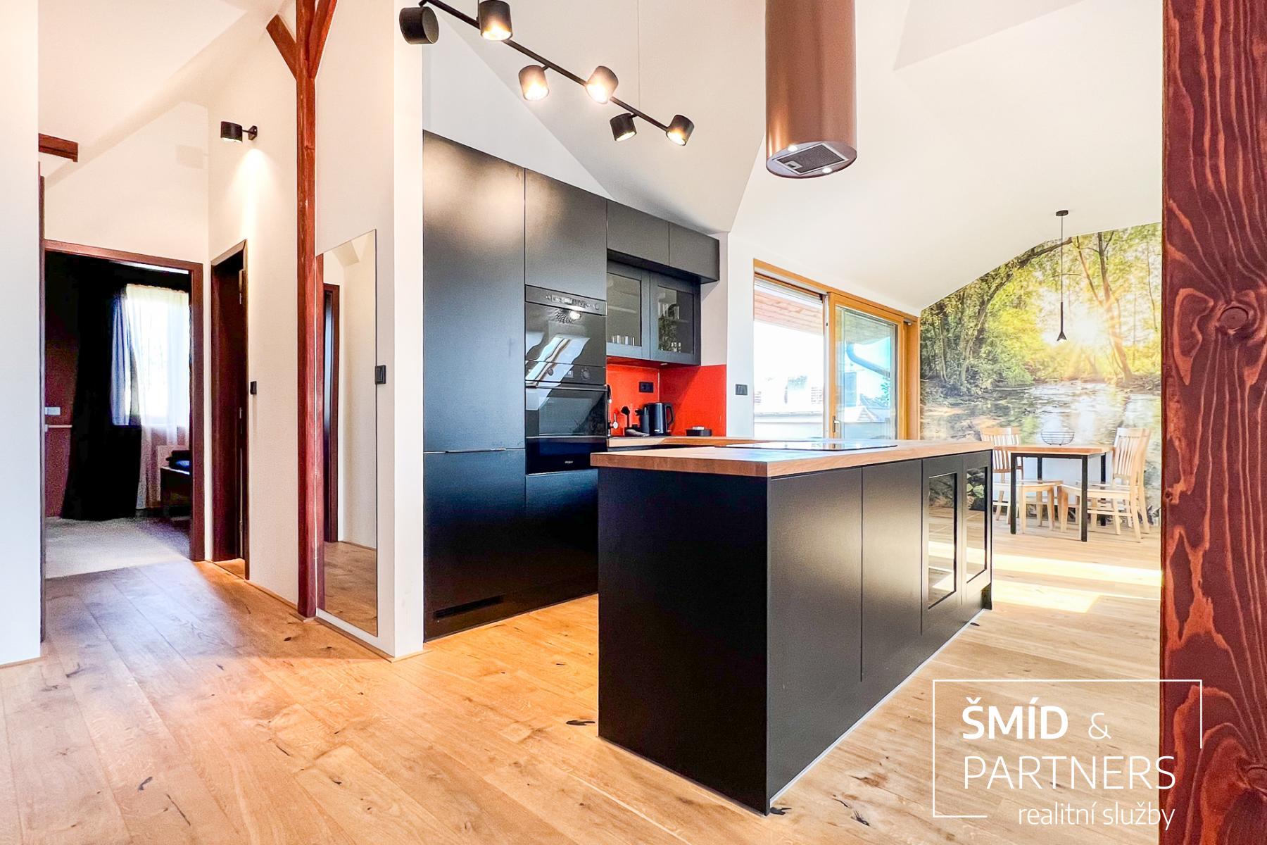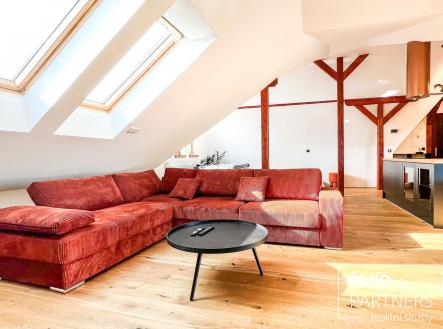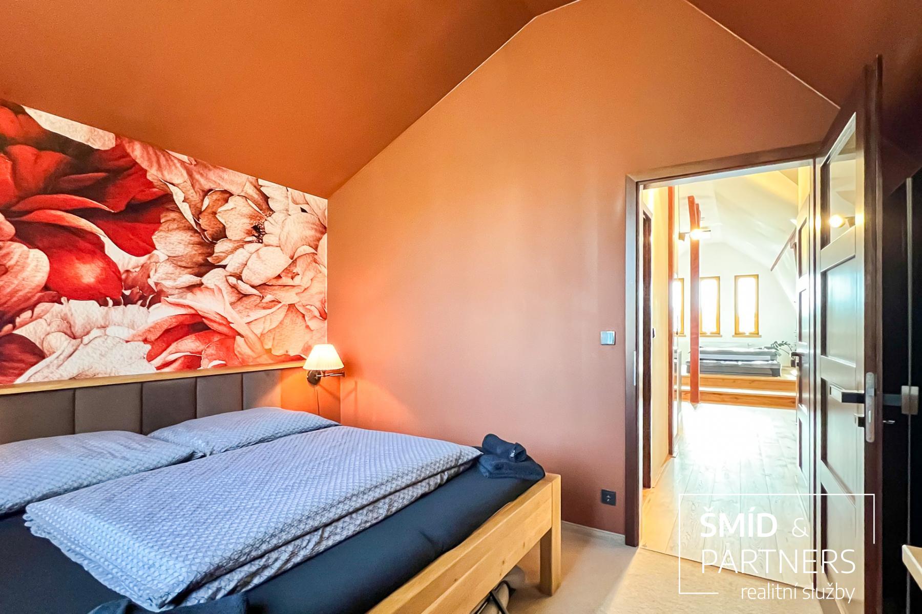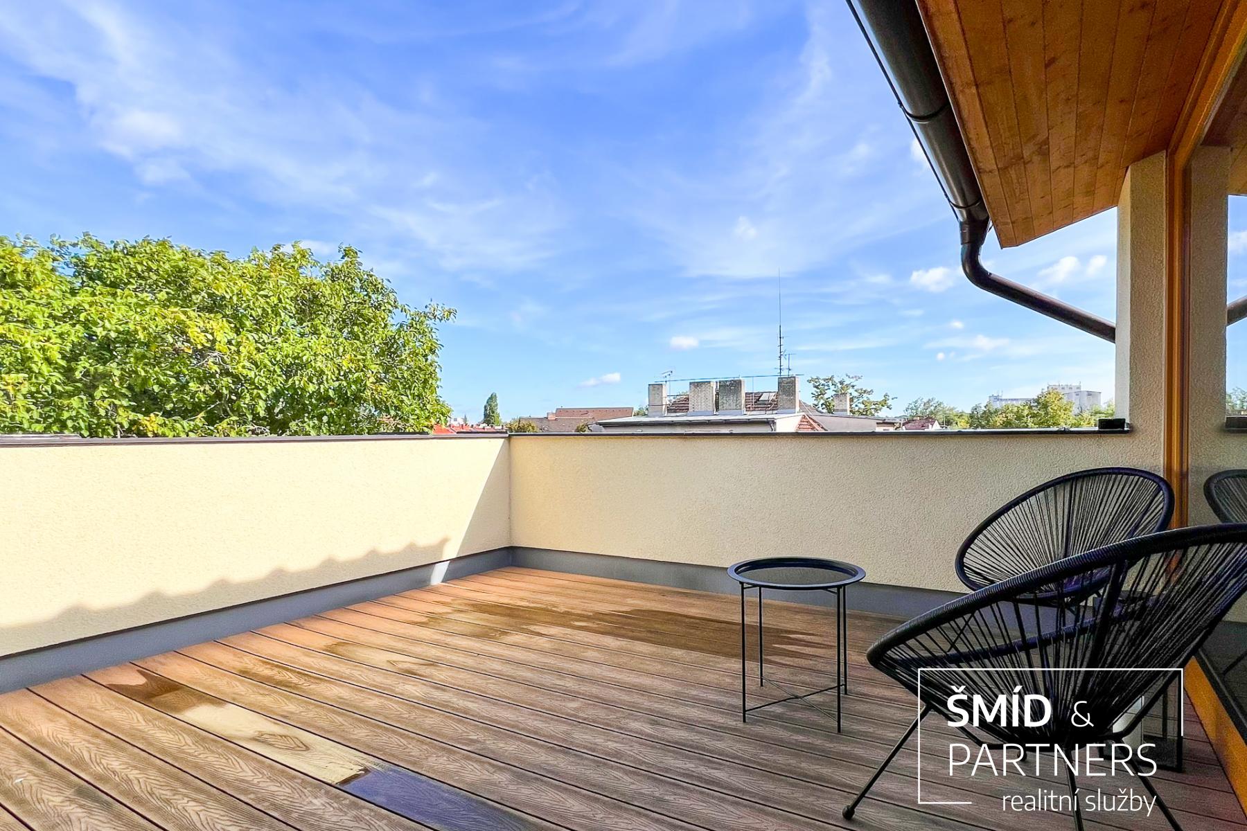 Nadstandardní byt o velikosti 82 m2 v podkroví s terasou, vířivkou, zahradou a saunou