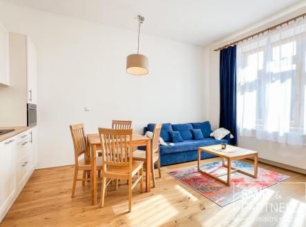 Nabízíme Vám ateliér o dispozici 2+kk a velikosti 44 m2 ve druhém patře prvorepublikové vily v Kolíně Zálabí, který je zařízen a vybaven jako pohodlný byt. Tento ateliér vznikl před dvěma lety, kdy byl dům, ve kterém se nachází kompletně zrekonstruován. V domě jsou celkem tři byty, ateliér, kanceláře a sauna. Ateliér je díky velkým Eurooknům a světlému interiéru příjemně prosluněný. Ateliér je prostorný a je zde jasně vidět spolupráce s architektkou, vznikl velice vkusný a praktický prostor s obývacím pokojem a kuchyní, ložnice, koupelna s WC a komora. Kuchyň je vybavena troubou, mikrovlnou troubou, lednicí, myčkou a indukcí. Nejčastěji používaný materiál je zde dřevo, vč. podlahové krytiny, díky tomu působí byt příjemným a teplým dojmem. V ložnici je položený koberec. Celkově byl při rekonstrukci domu kladen důraz na kvalitu použitých materiálů. Byt se prodává včetně veškerého nábytku a vybavení, např. televizor, pračka, myčka. Vytápění je zde pomocí tepelného čerpadla na principu vzduch - voda, tudíž slouží i pro ohřev vody. Náklady na topení, vodu a elektřinu činí cca 3 až 4 tisíce korun. Zahrada je stejně jako sauna k dispozici všem vlastníkům jednotek. Nyní se pracuje na založení SVJ, papírová forma je již připravena, jedná se pouze o doladění s úřady. Toto bydlení je vhodné pro ty z Vás, kteří nechtějí bydlet v panelovém domě a ocení benefit ke svému bydlení v podobě pobytu na zahradě, která má ve své zadní části pergolu, či možnost využít saunu. V centru Kolína jste svižnou chůzí za 10 min. Na byt lze uplatnit odpočet DPH (12%), v tom případě je cena 3,928.571,- Kč. Pokud Vás nabídka zaujala, kontaktujte mne, ráda Vás bytem a zahradou provedu. S financováním Vám můžeme pomoci.
