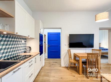 Nabízíme Vám byt o dispozici 2+kk a velikosti 43 m2 ve druhém patře prvorepublikové vily v Kolíně Zálabí. Kompletní rekonstrukce domu proběhla před dvěma lety, nově vznikly tři byty, ateliér, kanceláře a sauna. Byt je díky velkým Eurooknům a světlému interiéru příjemně prosluněný. Výhled do zahrady, která je stejně jako sauna k dispozici všem vlastníkům jednotek, je příjemným výhledem do zeleně. Byt je prostorný a je zde jasně vidět spolupráce s architektkou, vznikl velice vkusný a praktický byt, s obývacím pokojem a kuchyní, ložnice, koupelna s WC a komora. Kuchyň je vybavena troubou, mikrovlnou troubou, lednicí, myčkou a indukcí. Nejčastěji používaný materiál je zde dřevo, vč. podlahové krytiny, díky tomu působí byt příjemným a teplým dojmem. V ložnici je položený koberec. Celkově byl při rekonstrukci domu kladen důraz na kvalitu použitých materiálů. Byt se prodává včetně veškerého nábytku a vybavení, např. televizor, pračka, sušička.. Vytápění je zde pomocí tepelného čerpadla na principu vzduch - voda, tudíž slouží i pro ohřev vody. Náklady na topení, vodu a elektřinu činí cca 3 až 4 tisíce korun. Nyní se pracuje na založení SVJ, papírová forma je již připravena, jedná se pouze o doladění s úřady. Toto bydlení je vhodné pro ty z Vás, kteří nechtějí bydlet v panelovém domě a ocení benefit ke svému bydlení v podobě pobytu na zahradě, která má ve své zadní části pergolu, či možnost využít saunu. V centru Kolína jste svižnou chůzí za 10 min. Na byt lze uplatnit odpočet DPH (12%), v tom případě je cena 3,839.286,- Kč. Pokud Vás nabídka zaujala, kontaktujte mne, ráda Vás bytem a zahradou provedu. S financováním Vám můžeme pomoci.