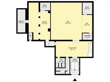 Nabízíme k pronájmu prostory pro multifunkční kulturní využití, či pro komerční projekty. Prostory se nachází v suterénu kostela na Husově náměstí v centru Kolína. Hlavní sál/hlediště o ploše 117 m2 pojme dle hygienických předpisů až 150 lidí. Vyvýšené podium s technickým zázemím a prostory pro účinkující má vice jak 80, m2. Pod balkónem je prostor pro bar se zázemím, jako je kuchyňka a sklad. Ve vstupním foyer se nachází oddělené dámské a pánské toalety a schodiště vedoucí na balkón. Hlavním předpokladem využití je pořádání kulturních a společenských akcí, nebo pro zázemí tanečních, sportovních či jiných volnočasových komerčních aktivit. Pronajímatel souhlasí s podnajímáním ze strany nájemce ke krátkodobým či jednorázovým kulturním a společenským akcím. Prostory jsou vytápěny dálkově parovodem a jsou vybaveny účinnou vzduchotechnikou, která umožňuje využít zmiňovanou kapacitu sálu. Prostory, po dohodě s pronajímatelem, je možno částečně stavebně a technicky upravit pro konkrétní účel a požadavky nájemce. Pro více informací a prohlídku mne, prosím, neváhejte kontaktovat. Jan Česal