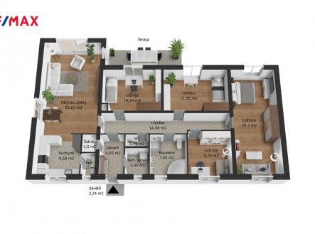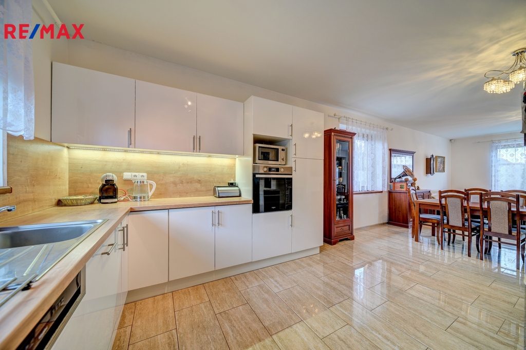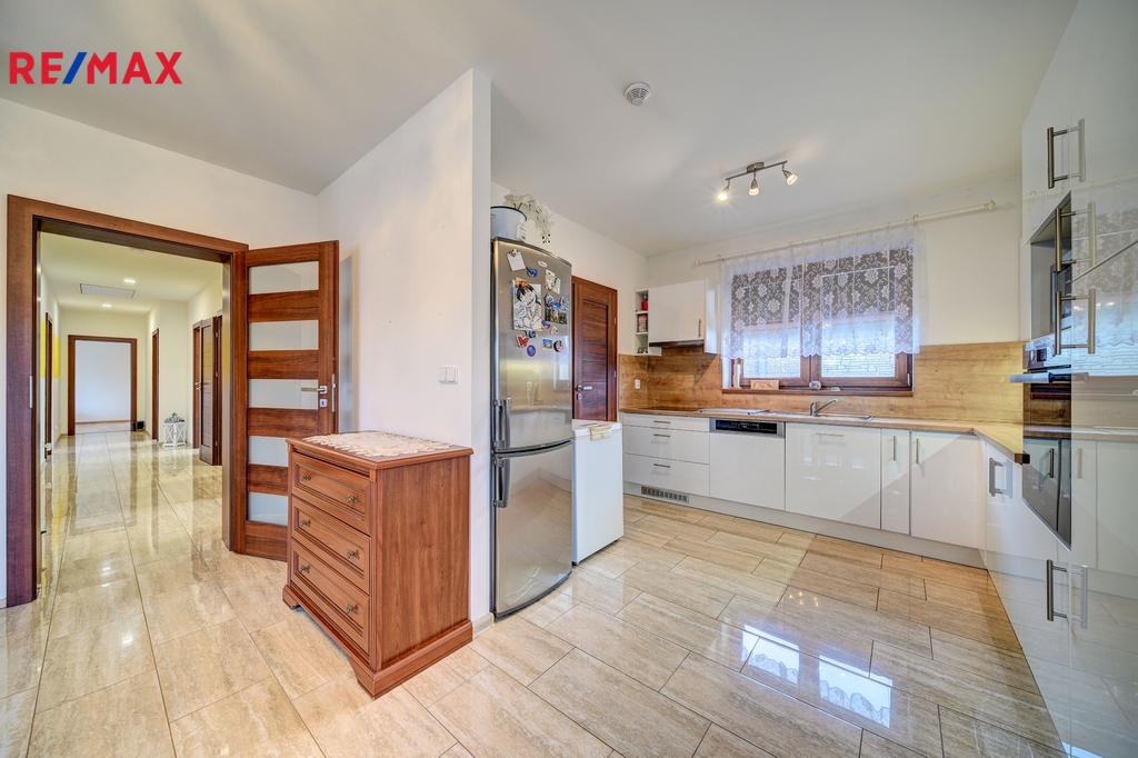 Nabízíme k prodeji moderní, světlý a velmi dobře dispozičně řešený bungalov o dispozici 5+1, který se nachází v klidné slepé ulici na okraji Kolína, v části Sendražice. Lokalita nabízí ideální kombinaci poklidného rodinného bydlení a výborné dostupnosti do centra města. Veškerá občanská vybavenost je v pěší vzdálenosti – škola, školka, obchody, zastávka MHD i další služby. Popis domu Dominantou domu je prostorný obývací pokoj s velkorysým prostorem pro rodinná setkání, plynule propojený s moderní kuchyní vybavenou kvalitními spotřebiči a praktickou spíží. Z obývací části je přímý vstup na krytou terasu s výhledem do zahrady – ideální místo pro relaxaci, grilování i dětské hry. Dispozice dále zahrnuje: prostornou vstupní chodbu technickou místnost samostatnou šatnu koupelnu s vanou i sprchovým koutem samostatné WC čtyři neprůchozí pokoje, vhodné jako ložnice, dětské pokoje nebo pracovna jedna z ložnic je nadstandardně velká a je připravena na možné rozdělení na dva pokoje V interiéru jsou použity kvalitní plovoucí podlahy a dlažba. Vjezdová brána je na dálkové ovládání, dům je vybaven zabezpečovacím systémem Jablotron. Tento dům představuje ideální volbu pro větší rodinu, která hledá komfortní, bezpečné a klidné bydlení v atraktivní lokalitě s veškerými službami na dosah a zároveň s rychlým spojením do centra Kolína i do přírody. Zaujala Vás tato nabídka? Pro více informací nebo domluvení prohlídky kontaktujte: Marta Sýkorová – 720 704 593