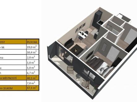 Prodej bytu, 2+kk, 47 m²