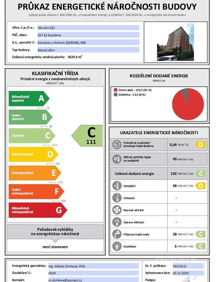 Nabízíme ke koupi byt 2+kk o velikosti 40 m² ve 3NP udržovaného a zatepleného panelového domu s výtahem v obci Komárov u Hořovic. Byt je v pěkném stavu, čistý a světlý, vizualizace možného zařízení je mezi fotografiemi. Díky své dispozici a lokalitě je tento byt vhodný pro jednotlivce, mladý pár nebo také jako startovací bydlení. Může být i skvělou investicí k pronájmu. V bytě byly provedeny nové elektrické i vodovodní rozvody, instalována plastová okna a v minulosti zrekonstruována koupelna se zděným jádrem. V pokojích je podlahová krytina z lina, ostatní místnosti mají dlažbu. Byt nabízí možnost úprav dle vlastních představ. Bytový dům je kompletně zateplený a disponuje vlastní plynovou kotelnou, která zajišťuje ohřev teplé vody a rozvod tepla do ústředního topení jednotlivých bytů. Obývací pokoj (19 m²) s přímým vstupem na prostornou lodžii (7 m²) orientovanou na jihozápad je ideálním místem k odpočinku s krásným výhledem do zeleně. Na obývací pokoj navazuje kuchyňský kout s linkou, dřezem, digestoří a přípravou na elektrický sporák a pračku. Ložnice (10,4 m²) je situována směrem na lodžii. V předsíni (6,7 m²) se nachází vestavěná skříň. Koupelna (2 m²) je vybavena sprchovým koutem a umyvadlem, WC je samostatné (1 m²). K bytu náleží také praktická komora přímo na patře (1 m²) a sklep v přízemí domu (1 m²). Komárov je příjemná a klidná obec, která nabízí plnou občanskou vybavenost – obchody, školu, školku, poštu i zdravotnická zařízení. Zároveň má velmi dobré dopravní spojení. Autobusová zastávka je vzdálená pouhých 5 minut chůze od bytu, do Hořovic se dostanete autem nebo autobusem za 10 minut a na pražské metro Zličín pohodlně dojedete autem za 35 minut od bytu. Díky tomu je lokalita vhodná jak pro mladý pár, tak i pro jednotlivce a představuje skvělý krok k vlastnímu bydlení. Základní škola s kapacitou 540 žáků s jídelnou a družinou pro 77 dětí nabízí literárněvýtvarný a počítačový kroužek včetně pohybových a sportovních her. Škola pořádá a organizuje školy v přírodě, lyžařské výcviky či sportovní soutěže a turnaje. Byt v Komárově je ideální volbou pro ty, kteří hledají dostupné bydlení v klidném prostředí obklopeném přírodou, ale s dobrou dostupností do Prahy i blízkých Hořovic. Velkou předností lokality je i pracovní zázemí v nedalekém průmyslovém areálu Žebrák, kde se nachází řada zaměstnavatelů z různých oborů. Díky tomu je byt zajímavou volbou nejen pro ty, kteří hledají bydlení v příjemném prostředí, ale i pro ty, kdo chtějí mít zaměstnání v dosahu několika minut. Komárov navíc leží na okraji Chráněné krajinné oblasti Brdy, což ocení všichni milovníci přírody. Přímo od domu se můžete vydat na cyklostezky, pěší túry nebo rodinné procházky do lesa. Prostředí je ideální pro aktivní trávení volného času, sport i relaxaci na čerstvém vzduchu. Zajistíme Vám financování tohoto bytu. Neváhejte mě kontaktovat pro více informací nebo osobní prohlídku.