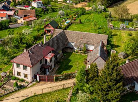 Nabízíme prodej nádherné, romantické zemědělské usedlosti o dvou bytových jednotkách (2+1 a 2+1 - horní část je po celkové rekonstrukci) v Kondraci u Vlašimi v okrese Benešov u Prahy k bydlení či investici. Zahrada činí 1477m2 + (parc.č. 367, k.ú. Kondrac) 3.392 m2 louka (pastvina) ve vzdálenosti 700 m od domu po obecní zpevněné a polní cestě. Možnost přikoupení další zemědělské půdy. Užitná plocha přízemí je 89 m2, užitná plocha 1NP je 74 m2, celková zastavěná plocha vč. zemědělských budov je cca 400 m2 V přízemí se nachází zádveří - vstupní hala, chodba, dva pokoje, koupelna se sprchovým koutem a druhá - původní koupelna s vanou, samostatná toaleta, kuchyň a místnost, která sloužila jako sklad či spíž a kde se také nachází bojler pro přízemí. Ze vstupní haly je schodištěm přesun do prvního patra. 1NP: dva pokoje, nově zrekonstruovaná koupelna s vanou a toaletou, kuchyň a malý sklad s druhým bojlerem. Nemovitost má uzavřený dvůr, který ohraničují hospodářské budovy - dvě prostorné, velmi zachovalé stodoly - v jedné jsou dvě pěkné stáje. Součástí statku je vejminek s nádherným kamenným, původním, klenutým sklepem a dále zastřešené prostory vyzívající k úpravě jako prostorné venkovní posezení. Z vnitřního dvora je také vstup do dílny, dále do dvou dalších chlévů, kde žili vepříci a zděného skladu na dřevo. Vytápění domu je řešeno výkonným, 3 roky starým kotlem na tuhá paliva do radiátorů - součástí statku je sklad na uhlí a sklad na dřevo. Do kotelny lze vejít vnitřkem domu či z venku samostatnými vchodovými dveřmi. Pitná voda je z obecního řádu ale na předzahrádce je voda z vlastní, původní kamenné studny, o hloubce 21m. Odpady mohou být svedeny do obecní kanalizace která je v obci nově vybudována, přípojka je připravena, prozatím jsou odpady svedeny do jímky, pár metrů od přípojky. 1623 m2 zahrady, která navazuje na nemovitost je možné zdarma užívat. MŠ, ZŠ, Gymnázium a další školy, obchody, poliklinika, veřejný bazén, zimní stadion a další občanská vybavenost se nachází ve čtyři min. vzdálené Vlašimi, dostupné pravidelnou autobusovou linkou cca každou hodinu. V obci je široko, daleko známá česká restaurace u Matoušků a obchod s potravinami a smíšeným zbožím. Dojezdová vzdálenost Praha: 45 min., Benešov 22 min., Vlašim 4 min., Tábor 35 min. Nájezd na D je 15 km. Se zajištěním nejvýhodnějšího financování Vám naši hypoteční specialisté rádi pomohou.