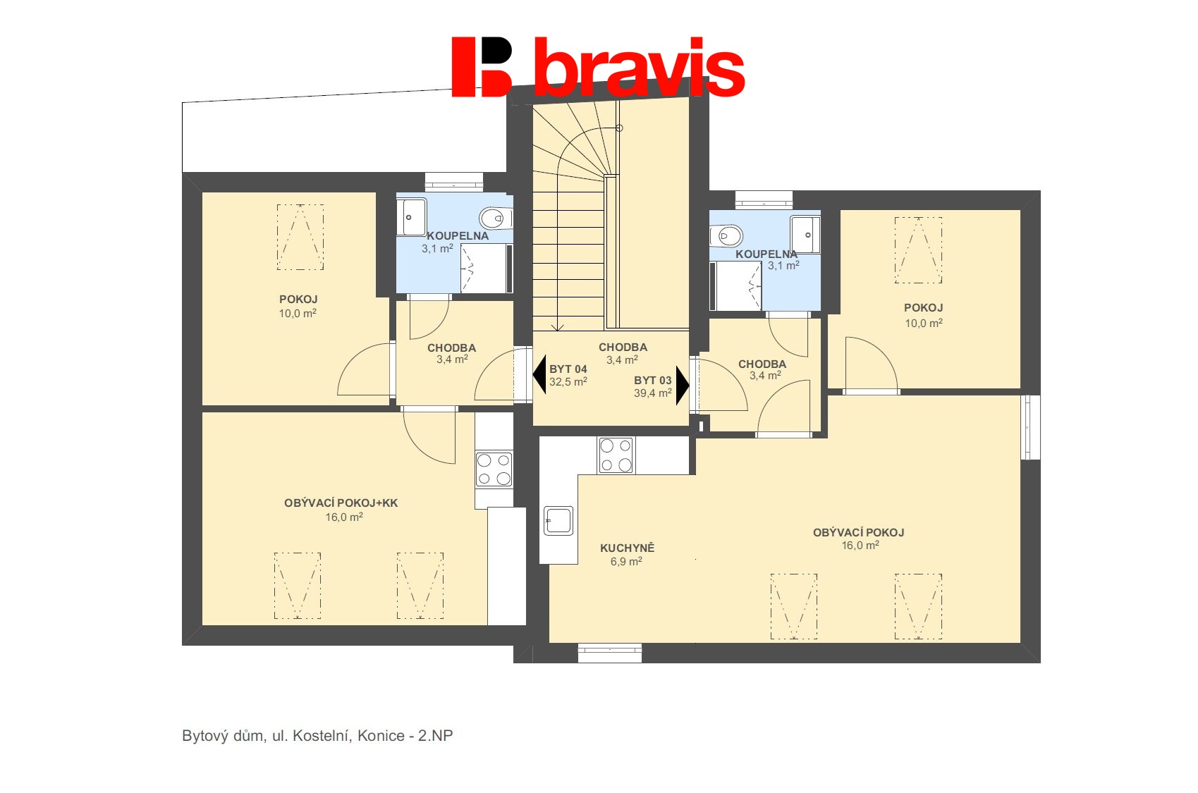 Developerský projekt se stavebním povolením – 4 byty + komerce, Konice u Prostějova