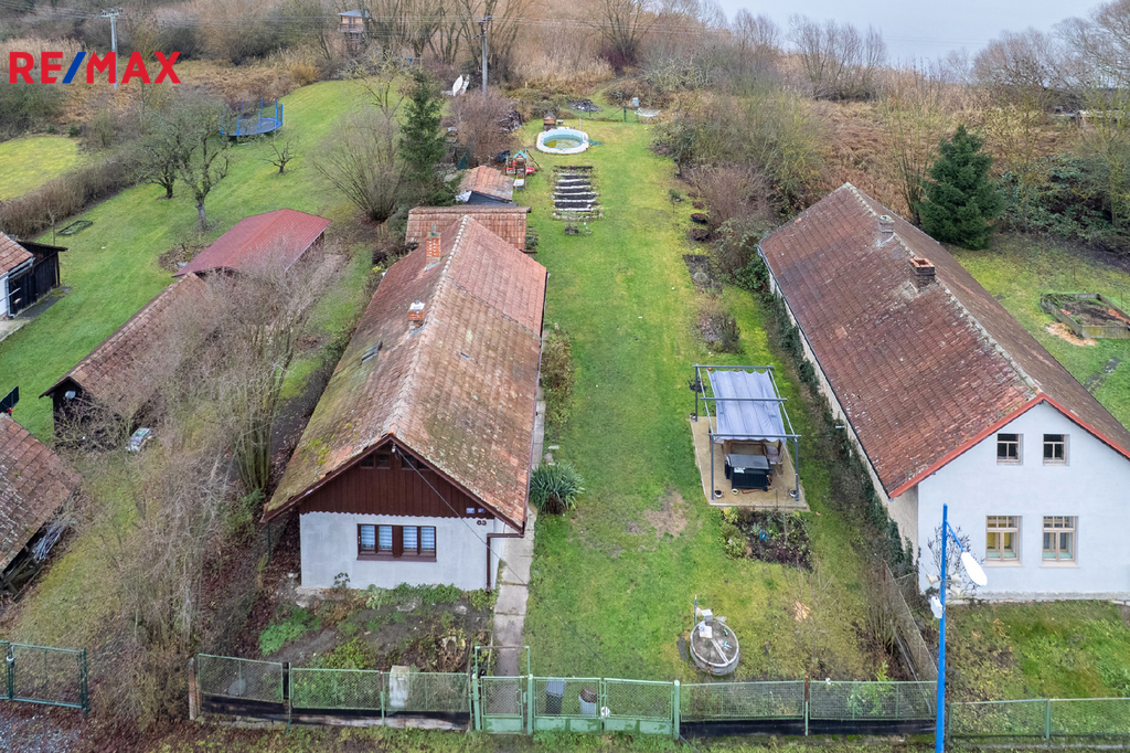 Prodej domu s bazénem a garáží, pozemek 844 m2 sousedící s rybníkem, Kopidlno - Mlýnec, okr. Jičín